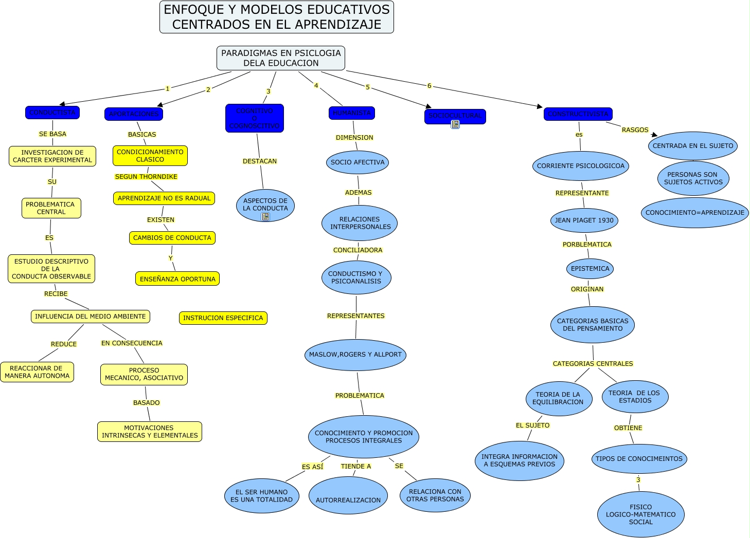 Este Cmap, tiene información relacionada con: MODELOS EDUCATIVOS, CONSTRUCTIVISTA RASGOS CENTRADA EN EL SUJETO, JEAN PIAGET 1930 PORBLEMATICA EPISTEMICA, PROCESO MECANICO, ASOCIATIVO BASADO MOTIVACIONES INTRINSECAS Y ELEMENTALES, MASLOW,ROGERS Y ALLPORT PROBLEMATICA CONOCIMIENTO Y PROMOCION PROCESOS INTEGRALES, EPISTEMICA ORIGINAN CATEGORIAS BASICAS DEL PENSAMIENTO, ESTUDIO DESCRIPTIVO DE LA CONDUCTA OBSERVABLE RECIBE INFLUENCIA DEL MEDIO AMBIENTE, HUMANISTA DIMENSION SOCIO AFECTIVA, CONDICIONAMIENTO CLASICO SEGUN THORNDIKE APRENDIZAJE NO ES RADUAL, INVESTIGACION DE CARCTER EXPERIMENTAL SU PROBLEMATICA CENTRAL, PARADIGMAS EN PSICLOGIA DELA EDUCACION 6 CONSTRUCTIVISTA, SOCIO AFECTIVA ADEMAS RELACIONES INTERPERSONALES, TIPOS DE CONOCIMEINTOS 3 FISICO LOGICO-MATEMATICO SOCIAL, CATEGORIAS BASICAS DEL PENSAMIENTO CATEGORIAS CENTRALES TEORIA DE LA EQUILIBRACION, PARADIGMAS EN PSICLOGIA DELA EDUCACION 5 SOCIOCULTURAL, TEORIA DE LOS ESTADIOS OBTIENE TIPOS DE CONOCIMEINTOS, PARADIGMAS EN PSICLOGIA DELA EDUCACION 2 APORTACIONES, CONDUCTISTA SE BASA INVESTIGACION DE CARCTER EXPERIMENTAL, COGNITIVO O COGNOSCITIVO DESTACAN ASPECTOS DE LA CONDUCTA, CORRIENTE PSICOLOGICOA REPRESENTANTE JEAN PIAGET 1930, CONDUCTISMO Y PSICOANALISIS REPRESENTANTES MASLOW,ROGERS Y ALLPORT