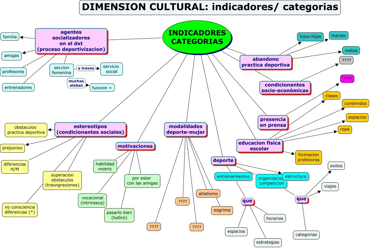 Este Cmap, tiene información relacionada con: dimension cultural- indicadores, seccion femenina a traves servicio social, INDICADORES CATEGORIAS agentes socializadores en el dxt (proceso deportivizacion) familia, INDICADORES CATEGORIAS modalidades deporte-mujer ????, entrenamientos que estrategias, INDICADORES CATEGORIAS estereotipos (condicionantes sociales) superacion obstaculos (trasngresiones), organizacion competicion que categorias, INDICADORES CATEGORIAS modalidades deporte-mujer esgrima, INDICADORES CATEGORIAS agentes socializadores en el dxt (proceso deportivizacion) amigas, INDICADORES CATEGORIAS educacion fisica escolar formacion profesoras, INDICADORES CATEGORIAS motivaciones vocacional (intrinseca), INDICADORES CATEGORIAS deporte entrenamientos, INDICADORES CATEGORIAS motivaciones habilidad motriz, entrenamientos que espacios, INDICADORES CATEGORIAS agentes socializadores en el dxt (proceso deportivizacion) entrenadores, INDICADORES CATEGORIAS educacion fisica escolar ropa, INDICADORES CATEGORIAS educacion fisica escolar clases, INDICADORES CATEGORIAS abandono practica deportiva hijos-hijas, INDICADORES CATEGORIAS condicionantes socio-económicas ????, INDICADORES CATEGORIAS agentes socializadores en el dxt (proceso deportivizacion) profesores, organizacion competicion que exitos