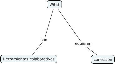Este Cmap, tiene información relacionada con: Wiki, Wikis requieren conección, Wikis son Herramientas colaborativas