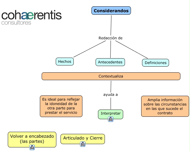 Este Cmap, tiene información relacionada con: Considerandos, Contextualiza ayuda a Interpretar, Considerandos Redacción de Antecedentes, Considerandos Redacción de Definiciones, Considerandos Redacción de Hechos