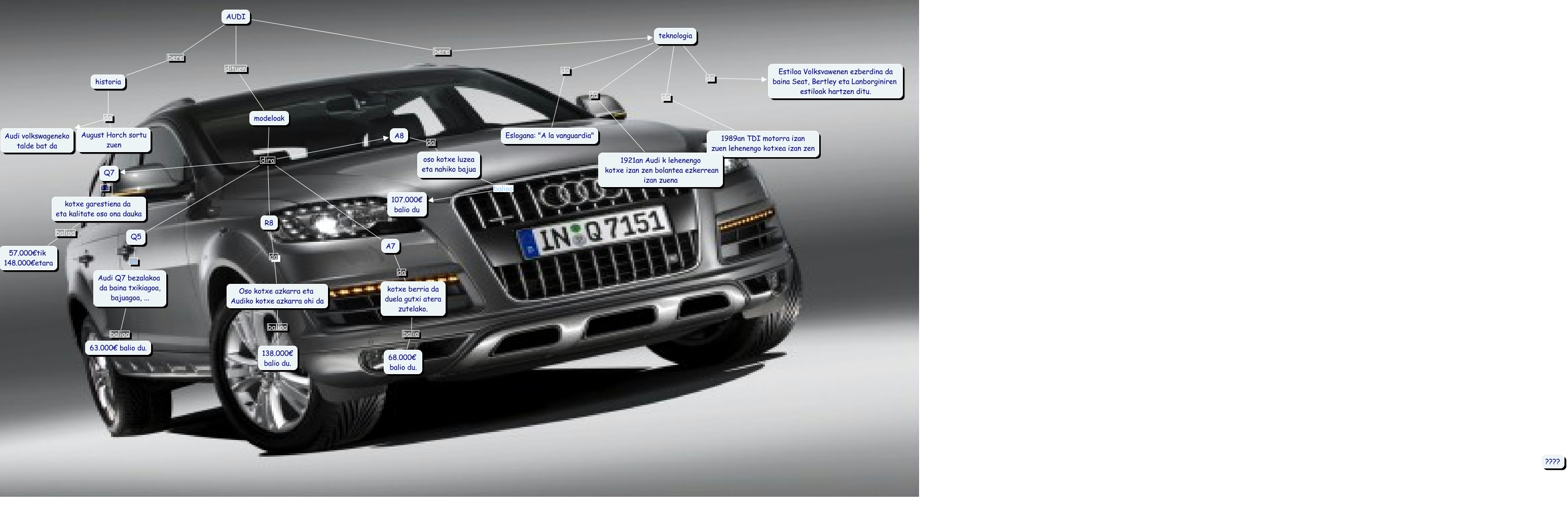 Este Cmap, tiene información relacionada con: adrian eta mikel, kotxe berria da duela gutxi atera zutelako. balio 68.000€ balio du., AUDI dituen modeloak, Q7 da kotxe garestiena da eta kalitate oso ona dauka, teknologia da 1921an Audi k lehenengo kotxe izan zen bolantea ezkerrean izan zuena, teknologia da Estiloa Volksvawenen ezberdina da baina Seat, Bertley eta Lanborginiren estiloak hartzen ditu., modeloak dira Q5, A7 da kotxe berria da duela gutxi atera zutelako., AUDI bere historia, AUDI bere teknologia, kotxe garestiena da eta kalitate oso ona dauka balioa 57.000€tik 148.000€etara, teknologia da Eslogana: "A la vanguardia", Audi Q7 bezalakoa da baina txikiagoa, bajuagoa, ... balioa 63.000€ balio du., modeloak dira R8, oso kotxe luzea eta nahiko bajua balioa 107.000€ balio du, Q5 da Audi Q7 bezalakoa da baina txikiagoa, bajuagoa, ..., modeloak dira A8, modeloak dira A7, historia da Audi volkswageneko talde bat da, modeloak dira Q7, R8 da Oso kotxe azkarra eta Audiko kotxe azkarra ohi da