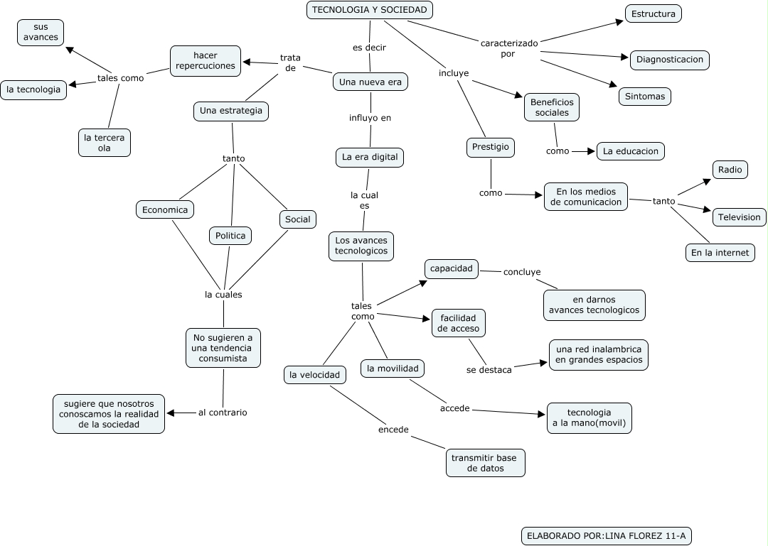 Este Cmap, tiene información relacionada con: TECNOLOGIA Y SOCIEDAD-LINA FLOREZ, En los medios de comunicacion tanto En la internet, Los avances tecnologicos tales como la velocidad, Los avances tecnologicos tales como facilidad de acceso, Beneficios sociales como La educacion, capacidad concluye en darnos avances tecnologicos, la tercera ola tales como la tecnologia, TECNOLOGIA Y SOCIEDAD incluye Prestigio, Una nueva era trata de hacer repercuciones, Una estrategia tanto Economica, En los medios de comunicacion tanto Television, TECNOLOGIA Y SOCIEDAD caracterizado por Diagnosticacion, la tercera ola tales como sus avances, la velocidad encede transmitir base de datos, Prestigio como En los medios de comunicacion, Una nueva era influyo en La era digital, Los avances tecnologicos tales como capacidad, la movilidad accede tecnologia a la mano(movil), En los medios de comunicacion tanto Radio, TECNOLOGIA Y SOCIEDAD incluye Beneficios sociales, Una estrategia tanto Politica