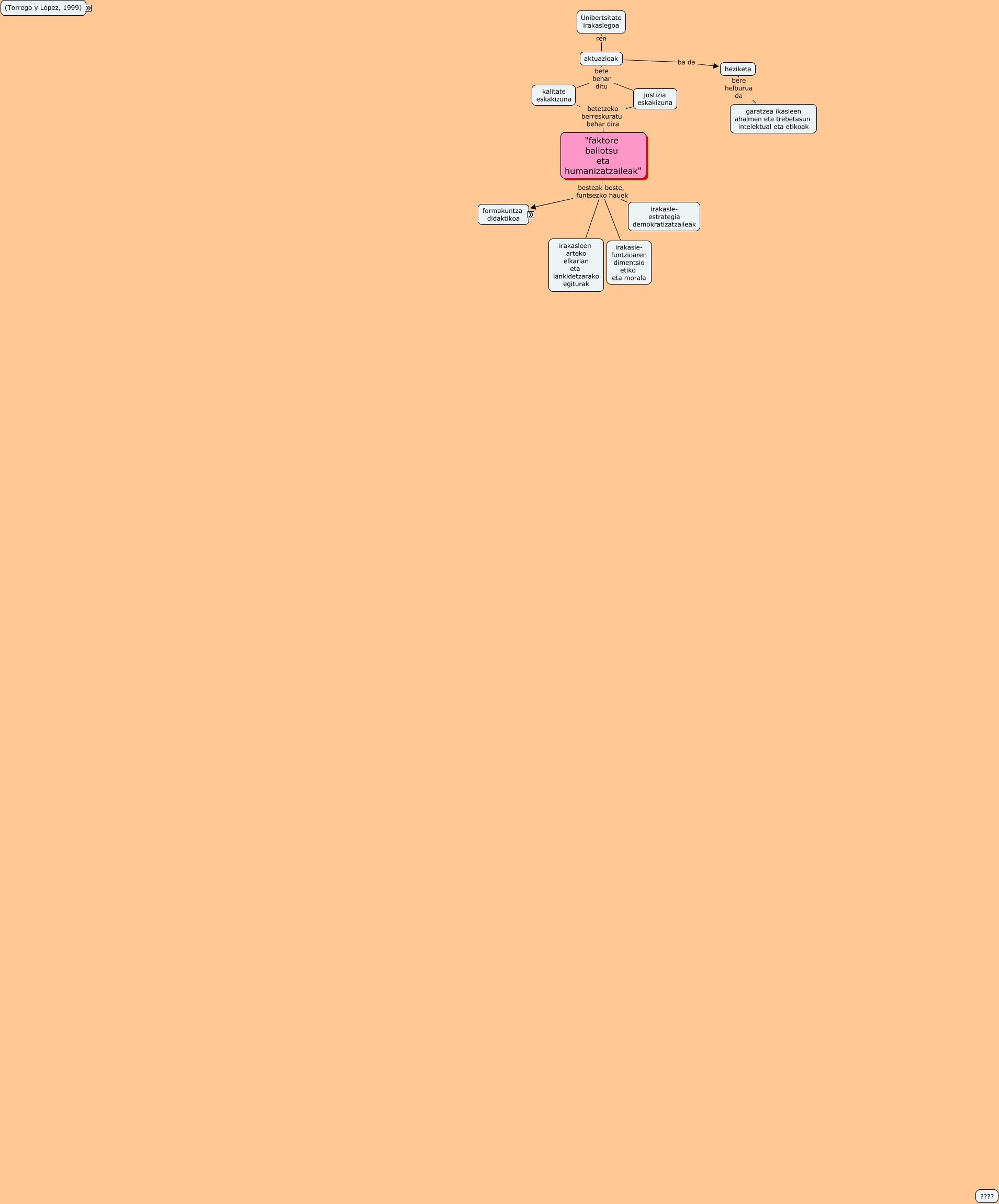 Este Cmap, tiene información relacionada con: didáctica y democracia1, formakuntza didaktikoa eta bere praktikari buruzko gogoeta, "faktore baliotsu eta humanizatzaileak" besteak beste, funtsezko hauek formakuntza didaktikoa, gogoeta akzioari buruz eta gogoeta akzioan (Schön, 1992) bihurtuz bere praktika ikertzen duen irakaslea, bere praktikari buruzko gogoeta bada heziketa- praktikaren funtsezko kualitatea, formakuntza didaktikoa bere presentzia bigarren hezkuntzako irakasleen formazioan, bere praktikari buruzko gogoeta tresna ona da heziketa aztertu eta hobetzeko, hautatu horretarako behar da gogoeta- gaitasuna, gogoeta akzioari buruz eta gogoeta akzioan (Schön, 1992) egokitzeko geletan suertatzen diren egoera aldagarriei, gogoeta akzioari buruz eta gogoeta akzioan (Schön, 1992) bihurtuz irakasle gogoetatsu, formakuntza didaktikoa bere presentzia lehen hezkuntzako irakasleen formazioan, haize onuragarri beharrezkoak adib dinámica de grupos, irakaslea da espezialista, hautatu horrek guztiak eskatzen du didaktika- formakuntza sistematiko, antolatua, aldez aurretik finkatutako helburuekin, haize onuragarri beharrezkoak adib ebaluazio jarraia, irakaslea falta zaio dimentsio artistikoa, haize onuragarri beharrezkoak adib ikerketa-akzioa, bere praktikari buruzko gogoeta tresna ona da irakaskuntza errutinaz eta inprobisazioaz askatzeko, unibertsateko irakaskuntzan bertan irakaslea, unibertsateko irakaskuntzan bertan razioanalitate teknikoa, kalitate eskakizuna betetzeko berreskuratu behar dira "faktore baliotsu eta humanizatzaileak"