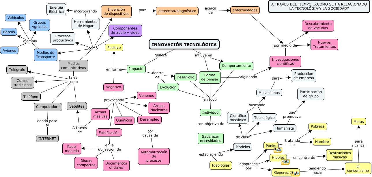Este Cmap, tiene información relacionada con: innovacion tecnologica, Falsificación en la utilización de Documentos oficiales, enfermedades por medio de Nuevos Tratamientos, Positivo como Medios comunicativos, Negativo provocando Desempleo, Evolución en todo Individuo, Falsificación en la utilización de Papel moneda, Punks tratando de Pobreza, Humanista que promueve Participación de grupo, Satélites tales como Computadora, Medios de Transporte ejemplo Barcos, Modelos de clase Humanista, INNOVACIÓN TECNOLÓGICA influye en Forma de pensar, Medios comunicativos tales como Computadora, Ideológias adoptadas por Hippies, Medios de Transporte ejemplo Vehiculos, Medios comunicativos tales como Teléfono, Negativo provocando Quimicos, Impacto en forma Positivo, Ideológias adoptadas por Generación X, Falsificación en la utilización de Discos compactos