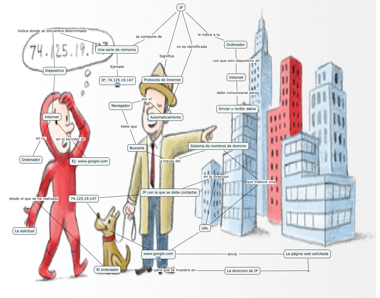 Este Cmap, tiene información relacionada con: Mariano, IP se compone de Una serie de números, La página web solicitada a La direccion de IP, Internet en tu Ordenador, Internet debe comunicarse para Enviar y recibir datos, Internet en el servidor de Ej: www.google.com, IP le indica a tu Ordenador, URL en la direccion IP con la que se debe contactar, www.google.com envia La página web solicitada, El ordenador desde el que se ha realizado La solicitud, Sistema de nombres de dominio que traduce una URL, Navegador tiene que Buscarla, Ordenador con que otro dispositivo de Internet, Una serie de números Ejemplo IP: 74.125.19.147, www.google.com = 74.125.19.147, Dispositivo de Internet, Buscarla a través del Sistema de nombres de dominio, URL www.google.com, IP con la que se debe contactar 74.125.19.147, IP Significa Protocolo de Internet, Una serie de números Indica donde se encuentra determinado Dispositivo