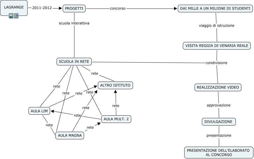 Questa Cmap, creata con IHMC CmapTools, contiene informazioni relative a: DAI MILLE A UN MILIONE DI STUDENTI, VISITA REGGIA DI VENARIA REALE condivisione REALIZZAZIONE VIDEO, LAGRANGE 2011-2012 PROGETTI, SCUOLA IN RETE rete AULA MAGNA, SCUOLA IN RETE rete ALTRO ISTITUTO, AULA LIM rete AULA MAGNA, PROGETTI scuola interattiva SCUOLA IN RETE, SCUOLA IN RETE rete AULA MULT. 2, DIVULGAZIONE presentazione PRESENTAZIONE DELL'ELABORATO AL CONCORSO, AULA LIM rete ALTRO ISTITUTO, AULA MULT. 2 rete ALTRO ISTITUTO, REALIZZAZIONE VIDEO approvazione DIVULGAZIONE, PROGETTI concorso DAI MILLE A UN MILIONE DI STUDENTI, SCUOLA IN RETE rete AULA LIM, SCUOLA IN RETE condivisione REALIZZAZIONE VIDEO, AULA MAGNA rete ALTRO ISTITUTO, AULA MAGNA rete AULA MULT. 2, DAI MILLE A UN MILIONE DI STUDENTI viaggio di istruzione VISITA REGGIA DI VENARIA REALE, AULA MULT. 2 rete AULA LIM