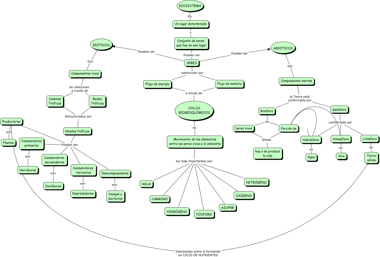 Este Cmap, tiene información relacionada con: ciclosbiogeoquimicos (1).cmap, Flujo de energía a través de Flujo de materia, Movimiento de los elementos entre los seres vivos y el ambiente los más importantes son OXÍGENO, ABIÓTICOS son Componentes inertes, Biosfera es Seres vivos, Niveles tróficos Pueden ser Consumidores terciarios, Seres vivos dónde hay o se produce la vida, Componentes vivos Se relacionan a través de Redes Tróficas, Biosfera es Porción de, Productores son Plantas, Movimiento de los elementos entre los seres vivos y el ambiente los más importantes son NITRÓGENO, Componentes vivos Se relacionan a través de Cadenas Tróficas, Consumidores terciarios son Depredadores, Niveles tróficos Pueden ser Consumidores secuendarios, BIÓTICOS Son Componentes vivos, Un lugar determinado Y Conjunto de seres que hay en ese lugar, Flujo de energía a través de CICLOS BIOGEOQUÍMICOS, Niveles tróficos Pueden ser Productores, Porción de, Componentes inertes la Tierra está conformada por Geósfera, CICLOS BIOGEOQUÍMICOS es Movimiento de los elementos entre los seres vivos y el ambiente