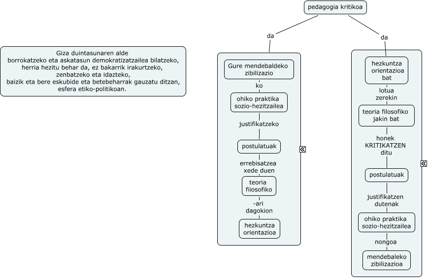 IHMC CmapTools-ekin sortu den kontzeptu-mapa honek honi buruzko informazioa du: adibid_def_ped_kritikoa, teoria fiiosofiko -ari dagokion hezkuntza orientazioa, postulatuak errebisatzea xede duen teoria fiiosofiko, ohiko praktika sozio-hezitzailea justifikatzeko postulatuak, Gure mendebaldeko zibilizazio ko ohiko praktika sozio-hezitzailea, pedagogia kritikoa da hezkuntza orientazioa bat, pedagogia kritikoa da Gure mendebaldeko zibilizazioko ohiko praktika sozio-hezitzailea justifikatu ohi dituzten postulatuak errebisatzea xede duen teoria fiiosofiko bati dagokion hezkuntza orientazioa, postulatuak justifikatzen dutenak ohiko praktika sozio-hezitzailea, hezkuntza orientazioa bat lotua zerekin teoria filosofiko jakin bat, teoria filosofiko jakin bat honek KRITIKATZEN ditu postulatuak, ohiko praktika sozio-hezitzailea nongoa mendebaleko zibilizazioa