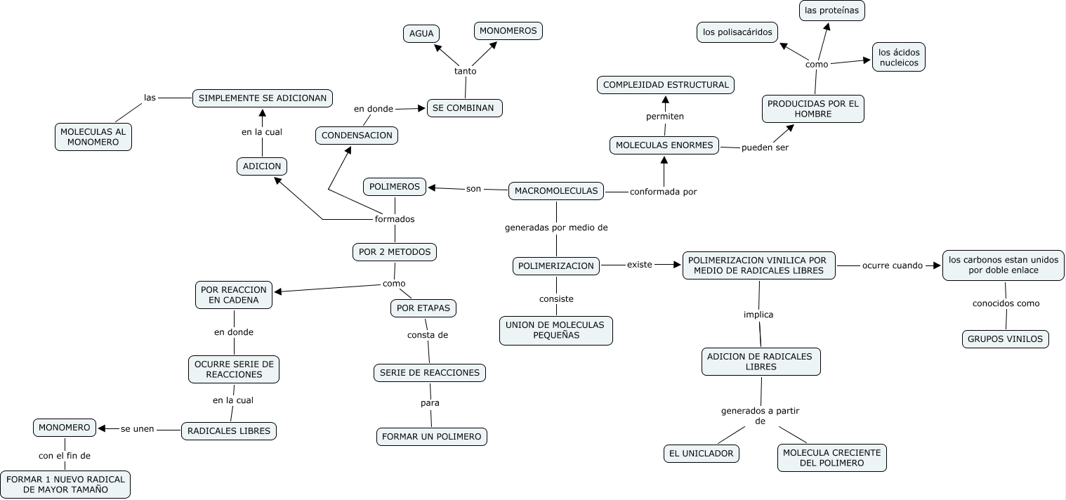 Este Cmap, tiene información relacionada con: DARLING NARVAEZ- TANIA ALVARADO... MACROMOLECULAS, POR REACCION EN CADENA en donde OCURRE SERIE DE REACCIONES, MACROMOLECULAS generadas por medio de POLIMERIZACION, POLIMERIZACION VINILICA POR MEDIO DE RADICALES LIBRES implica ADICION DE RADICALES LIBRES, SIMPLEMENTE SE ADICIONAN las MOLECULAS AL MONOMERO, MOLECULAS ENORMES pueden ser PRODUCIDAS POR EL HOMBRE, POLIMEROS formados ADICION, RADICALES LIBRES se unen MONOMERO, ADICION DE RADICALES LIBRES generados a partir de EL UNICLADOR, POR ETAPAS consta de SERIE DE REACCIONES, SE COMBINAN tanto MONOMEROS, PRODUCIDAS POR EL HOMBRE como las proteínas, SE COMBINAN tanto AGUA, CONDENSACION en donde SE COMBINAN, MACROMOLECULAS son POLIMEROS, OCURRE SERIE DE REACCIONES en la cual RADICALES LIBRES, POLIMERIZACION consiste UNION DE MOLECULAS PEQUEÑAS, MOLECULAS ENORMES permiten COMPLEJIDAD ESTRUCTURAL, los carbonos estan unidos por doble enlace conocidos como GRUPOS VINILOS, POLIMERIZACION existe POLIMERIZACION VINILICA POR MEDIO DE RADICALES LIBRES, POR 2 METODOS como POR REACCION EN CADENA