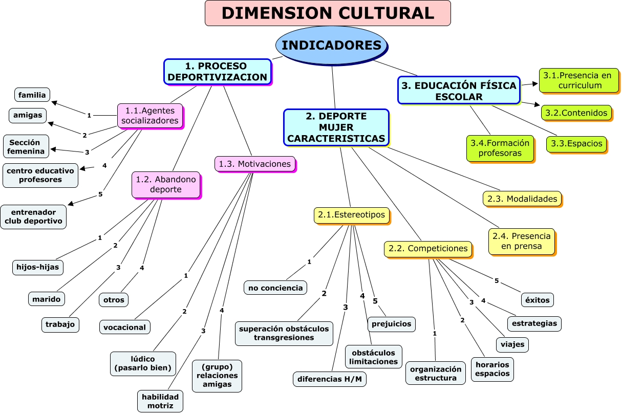 Este Cmap, tiene información relacionada con: DIMENSIONES CULTURALES 2, 1.1.Agentes socializadores 3 Sección femenina, 1.1.Agentes socializadores 5 entrenador club deportivo, INDICADORES 3. EDUCACIÓN F�?SICA ESCOLAR 3.3.Espacios, 1.1.Agentes socializadores 2 amigas, 2.1.Estereotipos 4 obstáculos limitaciones, 2.2. Competiciones 3 viajes, 1.1.Agentes socializadores 4 centro educativo profesores, INDICADORES 2. DEPORTE MUJER CARACTERISTICAS 2.2. Competiciones, 2.1.Estereotipos 3 diferencias H/M, 1.3. Motivaciones 2 lúdico (pasarlo bien), 2.1.Estereotipos 1 no conciencia, INDICADORES 2. DEPORTE MUJER CARACTERISTICAS 2.3. Modalidades, 1.2. Abandono deporte 1 hijos-hijas, 1.3. Motivaciones 4 (grupo) relaciones amigas, INDICADORES 3. EDUCACIÓN F�?SICA ESCOLAR 3.1.Presencia en curriculum, 2.2. Competiciones 5 éxitos, INDICADORES 3. EDUCACIÓN F�?SICA ESCOLAR 3.2.Contenidos, INDICADORES 1. PROCESO DEPORTIVIZACION 1.1.Agentes socializadores, 1.3. Motivaciones 1 vocacional, INDICADORES 3. EDUCACIÓN F�?SICA ESCOLAR 3.4.Formación profesoras