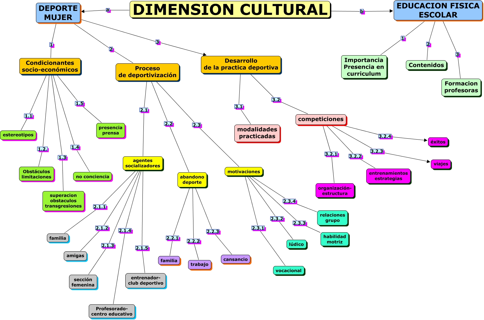 Este Cmap, tiene información relacionada con: dimension cultural -3 niveles, DEPORTE MUJER 3 Desarrollo de la practica deportiva, motivaciones 2.3.2 lúdico, competiciones 3.2.3 viajes, competiciones 3.2.1 organización- estructura, DEPORTE MUJER 2 Proceso de deportivización, motivaciones 2.3.4 relaciones grupo, agentes socializadores 2.1.5 entrenador- club deportivo, Desarrollo de la practica deportiva 3.1 modalidades practicadas, Proceso de deportivización 2.1 agentes socializadores, DIMENSION CULTURAL b EDUCACION FISICA ESCOLAR, Condicionantes socio-económicos 1.5 presencia prensa, agentes socializadores 2.1.4 Profesorado- centro educativo, motivaciones 2.3.3 habilidad motriz, motivaciones 2.3.1 vocacional, EDUCACION FISICA ESCOLAR 1 Importancia Presencia en curriculum, abandono deporte 2.2.1 familia, competiciones 3.2.4 éxitos, abandono deporte 2.2.3 cansancio, agentes socializadores 2.1.2 amigas, Condicionantes socio-económicos 1.3 superacion obstaculos transgresiones