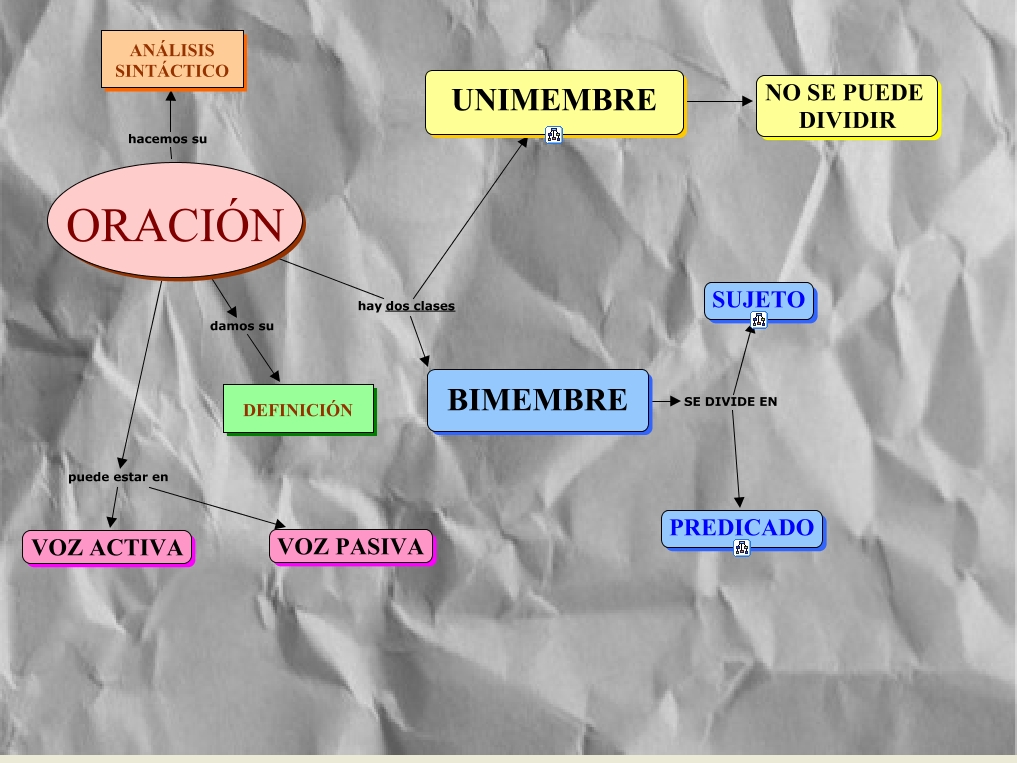 Este Cmap, tiene información relacionada con: SINTAXIS, ORACIÓN hacemos su ANÁLISIS SINTÁCTICO, UNIMEMBRE NO SE PUEDE DIVIDIR, ORACIÓN puede estar en VOZ ACTIVA, BIMEMBRE SE DIVIDE EN SUJETO, ORACIÓN puede estar en VOZ PASIVA, ORACIÓN hay dos clases BIMEMBRE, ORACIÓN hay dos clases UNIMEMBRE, ORACIÓN damos su DEFINICIÓN, BIMEMBRE SE DIVIDE EN PREDICADO