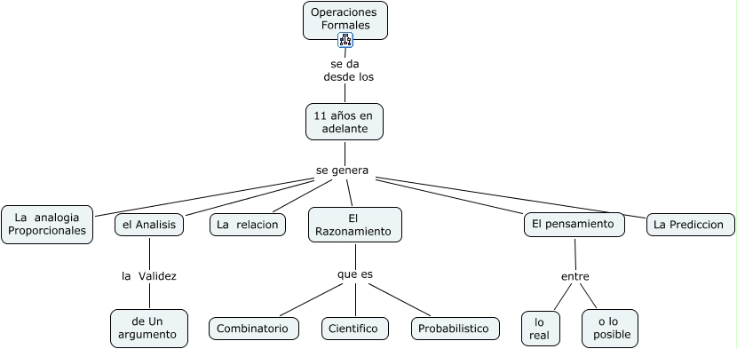 Este Cmap, tiene información relacionada con: e operacines formales, El Razonamiento que es Probabilistico, el Analisis la Validez de Un argumento, 11 años en adelante se genera El pensamiento, 11 años en adelante se genera La Prediccion, Operaciones Formales se da desde los 11 años en adelante, El pensamiento entre o lo posible, 11 años en adelante se genera el Analisis, El pensamiento entre lo real, 11 años en adelante se genera La analogia Proporcionales, El Razonamiento que es Cientifico, 11 años en adelante se genera El Razonamiento, El Razonamiento que es Combinatorio, 11 años en adelante se genera La relacion