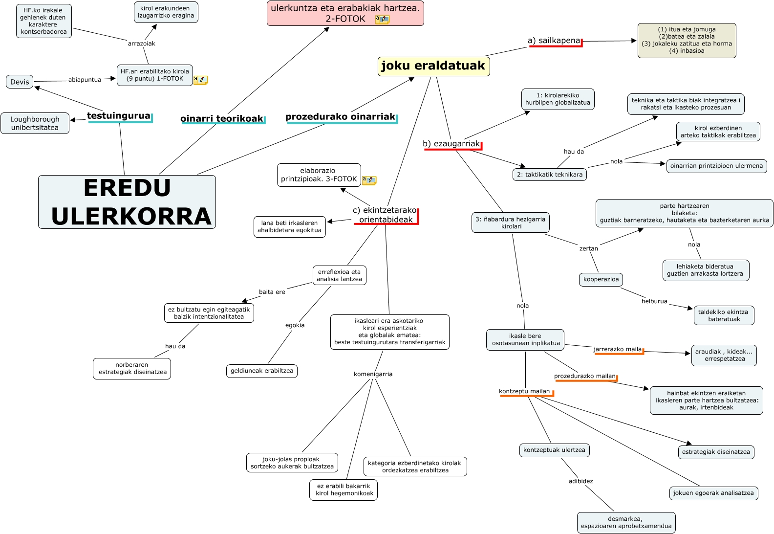 IHMC CmapTools-ekin sortu den kontzeptu-mapa honek honi buruzko informazioa du: Copia de eredu ulerkorra, joku eraldatuak a) sailkapena (1) itua eta jomuga (2)batea eta zalaia (3) jokaleku zatitua eta horma (4) inbasioa, Devís abiapuntua HF.an erabilitako kirola (9 puntu) 1-FOTOK, joku eraldatuak b) ezaugarriak 2: taktikatik teknikara, joku eraldatuak b) ezaugarriak 1: kirolarekiko hurbilpen globalizatua, HF.ko irakale gehienek duten karaktere kontserbadorea arrazoiak HF.an erabilitako kirola (9 puntu) 1-FOTOK, erreflexioa eta analisia lantzea egokia geldiuneak erabiltzea, ikasleari era askotariko kirol esperientziak eta globalak ematea: beste testuingurutara transferigarriak komenigarria joku-jolas propioak sortzeko aukerak bultzatzea, ikasle bere osotasunean inplikatua prozedurazko mailan hainbat ekintzen eraiketan ikasleren parte hartzea bultzatzea: aurak, irtenbideak, 3: ñabardura hezigarria kirolari zertan parte hartzearen bilaketa: guztiak barneratzeko, hautaketa eta bazterketaren aurka, 3: ñabardura hezigarria kirolari nola ikasle bere osotasunean inplikatua, ez bultzatu egin egiteagatik baizik intentzionalitatea hau da norberaren estrategiak diseinatzea, 2: taktikatik teknikara hau da teknika eta taktika biak integratzea i rakatsi eta ikasteko prozesuan, ikasle bere osotasunean inplikatua kontzeptu mailan estrategiak diseinatzea, HF.ko irakale gehienek duten karaktere kontserbadorea arrazoiak kirol erakundeen izugarrizko eragina, erreflexioa eta analisia lantzea baita ere ez bultzatu egin egiteagatik baizik intentzionalitatea, EREDU ULERKORRA prozedurako oinarriak joku eraldatuak, 2: taktikatik teknikara nola kirol ezberdinen arteko taktikak erabiltzea, joku eraldatuak c) ekintzetarako orientabideak erreflexioa eta analisia lantzea, EREDU ULERKORRA testuingurua Devís, joku eraldatuak c) ekintzetarako orientabideak lana beti irkasleren ahalbidetara egokitua