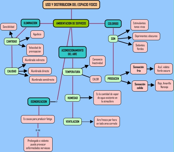 Este Cmap, tiene información relacionada con: AMBIENTACION DE SERVICIOS.cmap, Es causa para producir fatiga si es Prolongado o violento puede provocar enfermedades nerviosas, SON ???? PRODUCEN, AMBIENTACION DE SERVICOS y ISONORIZACION, CANTIDAD ???? Velocidad de prercepcion, AMBIENTACION DE SERVICOS ???? COLORIDO, HUMEDAD ???? Es la cantidad de vapor de agua existente en la atmosfera, AMBIENTACION DE SERVICOS ???? ILUMINACION, TEMPERATURA ???? CALOR, SON ???? Deprimentes: obscuros, ILUMINACION ???? CANTIDAD, CANTIDAD ???? Agudeza, AMBIENTACION DE SERVICOS ???? ACONDICIONAMIENTO DEL AIRE, Sensación calida ???? Rojo, Amarillo Naranja, CALIDAD ???? Alumbrado directo, ISONORIZACION ???? Es causa para producir fatiga, CALIDAD ???? Alumbrado semidirecto, COLORIDO ???? SON, CANTIDAD ???? CALIDAD, TEMPERATURA ???? Cansancio Inactividad, TEMPERATURA ???? HUMEDAD