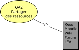 Cette carte de concepts créée avec IHMC CmapTools traite de: Ébauche 4, OA2 Partager des ressources I/P Ress Moodle Wiki Forum LÉA
