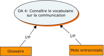 Cette carte de concepts créée avec IHMC CmapTools traite de: OA 4 - UA 1, Mots entrecroisés I/P OA 4: Connaître le vocabulaire sur la communication, Glossaire I/P OA 4: Connaître le vocabulaire sur la communication