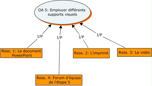 Cette carte de concepts créée avec IHMC CmapTools traite de: OA 5 - UA 6, Ress. 4: Forum d'équipe de l'étape 5 I/P OA 5: Employer différents supports visuels, Ress. 1: Le document PowerPoint I/P OA 5: Employer différents supports visuels, Ress. 3: La vidéo I/P OA 5: Employer différents supports visuels, Ress. 2: L'imprimé I/P OA 5: Employer différents supports visuels