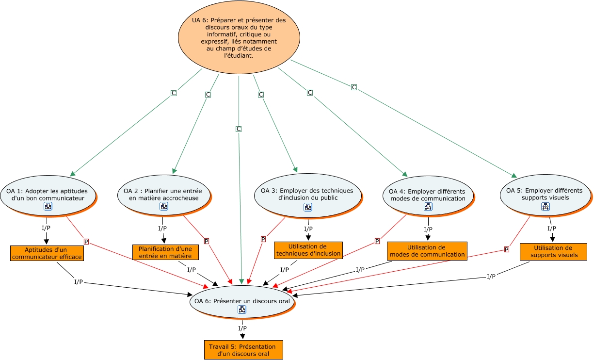 Cette carte de concepts créée avec IHMC CmapTools traite de: UA 6 - 104, OA 6: Présenter un discours oral I/P Travail 5: Présentation d'un discours oral, OA 4: Employer différents modes de communication P OA 6: Présenter un discours oral, OA 5: Employer différents supports visuels P OA 6: Présenter un discours oral, Planification d'une entrée en matière I/P OA 6: Présenter un discours oral, Utilisation de supports visuels I/P OA 6: Présenter un discours oral, OA 4: Employer différents modes de communication I/P Utilisation de modes de communication, UA 6: Préparer et présenter des discours oraux du type informatif, critique ou expressif, liés notamment au champ d’études de l’étudiant. C OA 6: Présenter un discours oral, OA 2 : Planifier une entrée en matière accrocheuse P OA 6: Présenter un discours oral, UA 6: Préparer et présenter des discours oraux du type informatif, critique ou expressif, liés notamment au champ d’études de l’étudiant. C OA 2 : Planifier une entrée en matière accrocheuse, UA 6: Préparer et présenter des discours oraux du type informatif, critique ou expressif, liés notamment au champ d’études de l’étudiant. C OA 4: Employer différents modes de communication, UA 6: Préparer et présenter des discours oraux du type informatif, critique ou expressif, liés notamment au champ d’études de l’étudiant. C OA 1: Adopter les aptitudes d'un bon communicateur, OA 3: Employer des techniques d'inclusion du public I/P Utilisation de techniques d'inclusion, OA 2 : Planifier une entrée en matière accrocheuse I/P Planification d'une entrée en matière, OA 1: Adopter les aptitudes d'un bon communicateur P OA 6: Présenter un discours oral, OA 3: Employer des techniques d'inclusion du public P OA 6: Présenter un discours oral, UA 6: Préparer et présenter des discours oraux du type informatif, critique ou expressif, liés notamment au champ d’études de l’étudiant. C OA 3: Employer des techniques d'inclusion du public, Aptitudes d'un communicateur efficace I/P OA 6: Présenter un discours oral, OA 5: Employer différents supports visuels I/P Utilisation de supports visuels, Utilisation de techniques d'inclusion I/P OA 6: Présenter un discours oral, Utilisation de modes de communication I/P OA 6: Présenter un discours oral
