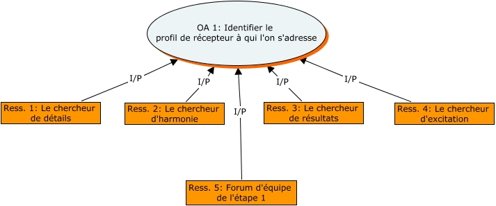 Cette carte de concepts créée avec IHMC CmapTools traite de: OA 1 - UA 2, Ress. 3: Le chercheur de résultats I/P OA 1: Identifier le profil de récepteur à qui l'on s'adresse, Ress. 2: Le chercheur d'harmonie I/P OA 1: Identifier le profil de récepteur à qui l'on s'adresse, Ress. 5: Forum d'équipe de l'étape 1 I/P OA 1: Identifier le profil de récepteur à qui l'on s'adresse, Ress. 1: Le chercheur de détails I/P OA 1: Identifier le profil de récepteur à qui l'on s'adresse, Ress. 4: Le chercheur d'excitation I/P OA 1: Identifier le profil de récepteur à qui l'on s'adresse