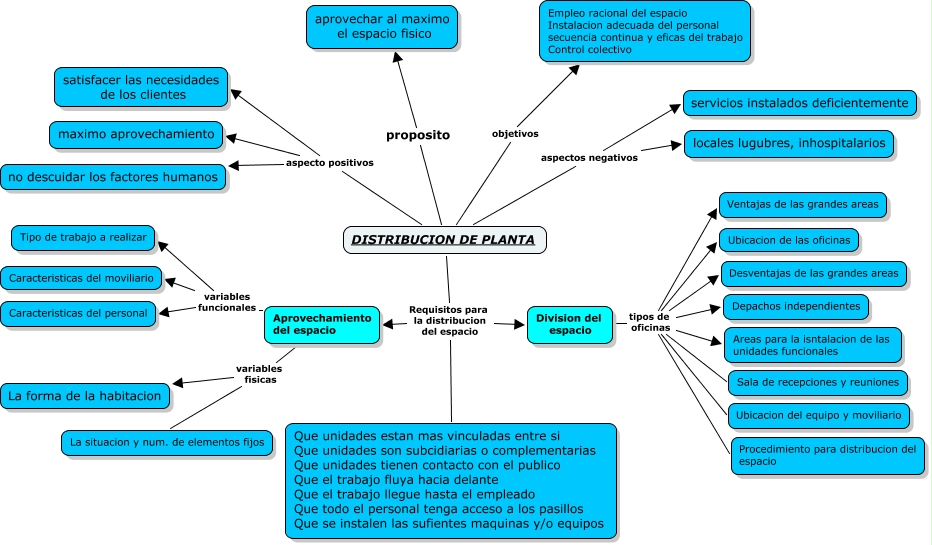 Este Cmap, tiene información relacionada con: DISTRIBUCION DE PLANTA, Aprovechamiento del espacio variables fisicas La forma de la habitacion, Division del espacio tipos de oficinas Areas para la isntalacion de las unidades funcionales, Aprovechamiento del espacio variables funcionales Tipo de trabajo a realizar, Division del espacio tipos de oficinas Ubicacion de las oficinas, Division del espacio tipos de oficinas Sala de recepciones y reuniones, Division del espacio tipos de oficinas Depachos independientes, Aprovechamiento del espacio variables fisicas La situacion y num. de elementos fijos, DISTRIBUCION DE PLANTA aspecto positivos satisfacer las necesidades de los clientes, Aprovechamiento del espacio variables funcionales Caracteristicas del moviliario, Division del espacio tipos de oficinas Procedimiento para distribucion del espacio, DISTRIBUCION DE PLANTA aspectos negativos locales lugubres, inhospitalarios, DISTRIBUCION DE PLANTA proposito aprovechar al maximo el espacio fisico, DISTRIBUCION DE PLANTA objetivos Empleo racional del espacio Instalacion adecuada del personal secuencia continua y eficas del trabajo Control colectivo, Division del espacio tipos de oficinas Ventajas de las grandes areas, DISTRIBUCION DE PLANTA aspecto positivos no descuidar los factores humanos, DISTRIBUCION DE PLANTA Requisitos para la distribucion del espacio Division del espacio, Aprovechamiento del espacio variables funcionales Caracteristicas del personal, Division del espacio tipos de oficinas Ubicacion del equipo y moviliario, DISTRIBUCION DE PLANTA Requisitos para la distribucion del espacio Aprovechamiento del espacio, DISTRIBUCION DE PLANTA aspecto positivos maximo aprovechamiento