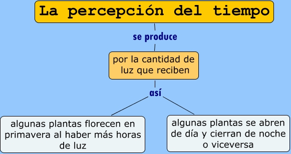 Este Cmap, tiene información relacionada con: La percepción del tiempo de las plantas, por la cantidad de luz que reciben así algunas plantas se abren de día y cierran de noche o viceversa, por la cantidad de luz que reciben así algunas plantas florecen en primavera al haber más horas de luz, La percepción del tiempo se produce por la cantidad de luz que reciben