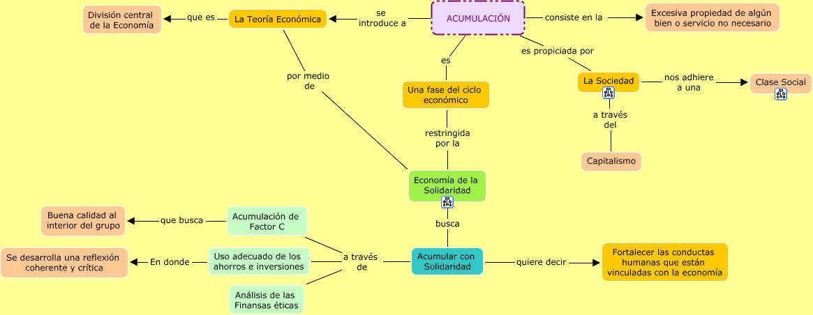 Este Cmap, tiene información relacionada con: Acumulación 001, Una fase del ciclo económico restringida por la Economía de la Solidaridad, ACUMULACIÓN se introduce a La Teoría Económica, Uso adecuado de los ahorros e inversiones En donde Se desarrolla una reflexión coherente y crítica, Acumulación de Factor C que busca Buena calidad al interior del grupo, Acumular con Solidaridad a través de Uso adecuado de los ahorros e inversiones, Acumular con Solidaridad quiere decir Fortalecer las conductas humanas que están vinculadas con la economía, Acumular con Solidaridad a través de Análisis de las Finansas éticas, ACUMULACIÓN es Una fase del ciclo económico, La Sociedad a través del Capitalismo, Economía de la Solidaridad busca Acumular con Solidaridad, ACUMULACIÓN consiste en la Excesiva propiedad de algún bien o servicio no necesario, Acumular con Solidaridad a través de Acumulación de Factor C, ACUMULACIÓN es propiciada por La Sociedad, La Teoría Económica por medio de Economía de la Solidaridad, La Teoría Económica que es División central de la Economía, La Sociedad nos adhiere a una Clase Social