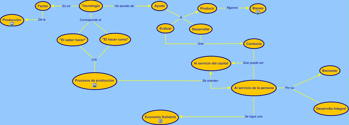 Este Cmap, tiene información relacionada con: Produccion-tecnologia, Al servicio de la persona Por su Bienestar, Al servicio de la persona Se logra una Economía Solidaria, Evaluar Una Conducta, Producir Algunos Bienes, Tecnología Corresponde al "El saber hacer", "El saber hacer" Los Procesos de producción, Desarrollar Una Conducta, Tecnología Es un Factor, Procesos de producción Se orienten Al servicio del capital, Al servicio de la persona Por su Desarrollo Integral, Ayuda A Producir, Conducta Que puede ser Al servicio de la persona, Tecnología Ha servido de Ayuda, Procesos de producción Se orienten Al servicio de la persona, Factor De la Producción, Ayuda A Desarrollar, Conducta Que puede ser Al servicio del capital, Tecnología Corresponde al "El hacer como", "El hacer como" Los Procesos de producción, Ayuda A Evaluar