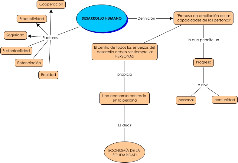 Este Cmap, tiene información relacionada con: INTRODUCCION, DESARROLLO HUMANO Factores Equidad, "Proceso de ampliación de las capacidades de las personas" lo que permite un Progreso, El centro de todos los esfuerzos del desarrollo deben ser siempre las PERSONAS propicia Una economía centrada en la persona, DESARROLLO HUMANO Factores Sustentabilidad, DESARROLLO HUMANO Factores Productividad, Una economía centrada en la persona Es decir ECONOMÍA DE LA SOLIDARIDAD, Progreso a nivel personal, "Proceso de ampliación de las capacidades de las personas" ???? El centro de todos los esfuerzos del desarrollo deben ser siempre las PERSONAS, DESARROLLO HUMANO Factores Potenciación, DESARROLLO HUMANO Definición "Proceso de ampliación de las capacidades de las personas", DESARROLLO HUMANO Factores Cooperación, DESARROLLO HUMANO Factores Seguridad, Progreso a nivel comunidad