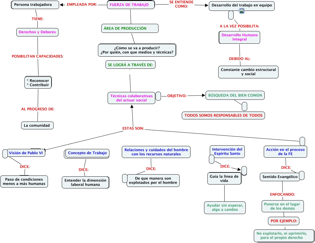 Este Cmap, tiene información relacionada con: Carito - Fuerza de trabajo cmap, * Reconocer * Contribuir AL PROGRESO DE: La comunidad, A LA VEZ POSIBILITA: Desarrollo Humano Integral, ESTAS SON: ????, Guía la línea de vida ???? Ayudar sin esperar, algo a cambio, ÁREA DE PRODUCCIÓN ???? ¿Cómo se va a producir? ¿Por quién, con que medios y técnicas?, FUERZA DE TRABAJO ???? ÁREA DE PRODUCCIÓN, OBJETIVO: ????, DICE:, ESTAS SON: Técnicas colaborativas del actuar social, ???? ENFOCANDO: ????, SE LOGRÁ A TRAVÉS DE: MUCHAS ????, Desarrollo Humano Integral DEBIDO AL: ????, ???? No explotarlo, ni oprimirlo, por el derecho propio, DICE: ????, ???? DICE:, Concepto de Trabajo DICE: Entender la dimensión laboral humana, Persona Trabajadora TIENE: Derechos y Deberes, ???? EMPLEADA POR: Persona trabajadora, ???? DICE:, Derechos y Deberes POSIBILITAN CAPACIDADES: * Reconocer * Contribuir