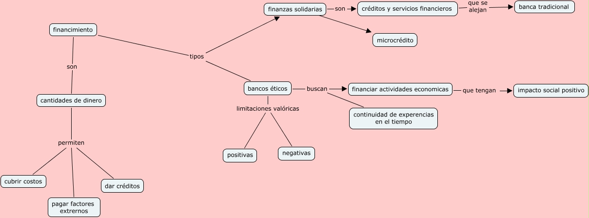 Este Cmap, tiene información relacionada con: financiamiento, financiar actividades economicas que tengan impacto social positivo, finanzas solidarias son créditos y servicios financieros, bancos éticos buscan financiar actividades economicas, financimiento tipos finanzas solidarias, bancos éticos buscan continuidad de experencias en el tiempo, bancos éticos limitaciones valóricas positivas, créditos y servicios financieros que se alejan banca tradicional, bancos éticos limitaciones valóricas negativas, finanzas solidarias ???? microcrédito, cantidades de dinero permiten cubrir costos, cantidades de dinero permiten dar créditos, cantidades de dinero permiten pagar factores extrernos, financimiento tipos bancos éticos, financimiento son cantidades de dinero