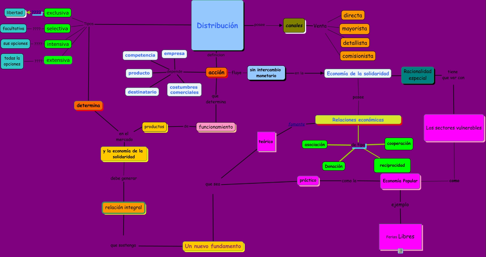 Este Cmap, tiene información relacionada con: distribucion, acción que determina funcionamiento, Racionalidad especial tiene que ver con Los sectores vulnerables, acción depende producto, Un nuevo fundamento que sea teórico, determina Tipos intensiva, práctico como la Economía Popular, teórico fomente Relaciones económicas, Economía de la solidaridad posee Relaciones económicas, sin intercambio monetario en la Economía de la solidaridad, determina Tipos selectiva, canales Venta directa, determina en el mercado y la economía de la solidaridad, intensiva ???? sus opciones, Ferias Libres ejemplo Economía Popular, Distribución Tipos intensiva, acción depende destinatario, Distribución posee canales, acción depende competencia, Relaciones económicas de tipo Donación, funcionamiento de productos