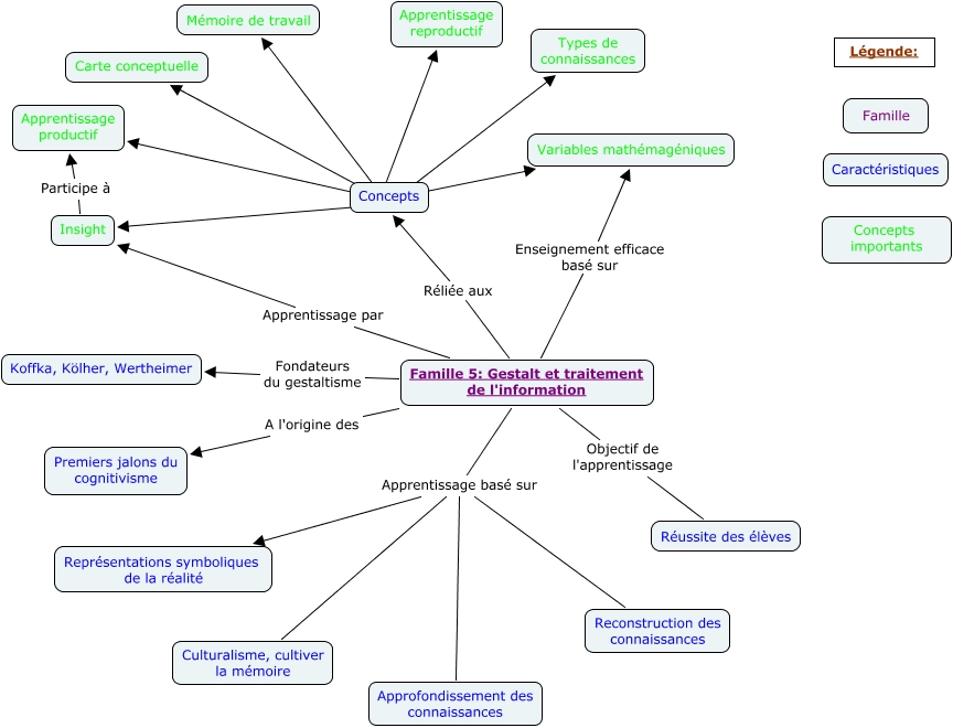 Cette carte de concepts créée avec IHMC CmapTools traite de: famille 5, Famille 5: Gestalt et traitement de l'information Objectif de l'apprentissage Réussite des élèves, Insight Participe à Apprentissage productif, Concepts ???? Types de connaissances, Concepts ???? Insight, Concepts ???? Variables mathémagéniques, Famille 5: Gestalt et traitement de l'information Apprentissage basé sur Approfondissement des connaissances, Concepts ???? Mémoire de travail, Famille 5: Gestalt et traitement de l'information Enseignement efficace basé sur Variables mathémagéniques, Famille 5: Gestalt et traitement de l'information Apprentissage basé sur Reconstruction des connaissances, Concepts Apprentissage productif, Concepts ???? Apprentissage reproductif, Famille 5: Gestalt et traitement de l'information Fondateurs du gestaltisme Koffka, Kölher, Wertheimer, Famille 5: Gestalt et traitement de l'information Apprentissage basé sur Représentations symboliques de la réalité, Famille 5: Gestalt et traitement de l'information A l'origine des Premiers jalons du cognitivisme, Famille 5: Gestalt et traitement de l'information Apprentissage basé sur Culturalisme, cultiver la mémoire, Concepts ???? Carte conceptuelle, Famille 5: Gestalt et traitement de l'information Réliée aux Concepts, Famille 5: Gestalt et traitement de l'information Apprentissage par Insight