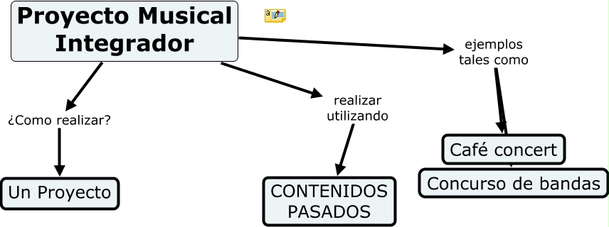 Este Cmap, tiene información relacionada con: Proyecto musical, Proyecto Musical Integrador ¿Como realizar? Un Proyecto, Proyecto Musical Integrador ejemplos tales como Concurso de bandas, Proyecto Musical Integrador realizar utilizando CONTENIDOS PASADOS, Proyecto Musical Integrador ejemplos tales como Café concert