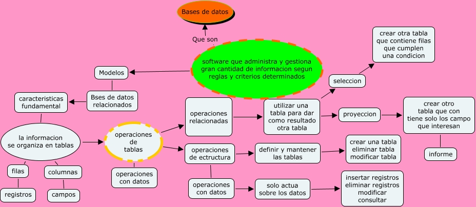 Este Cmap, tiene información relacionada con: tecnologia, definir y mantener las tablas crear una tabla eliminar tabla modificar tabla, operaciones relacionadas utilizar una tabla para dar como resultado otra tabla, software que administra y gestiona gran cantidad de informacion segun reglas y criterios determinados Modelos, seleccion crear otra tabla que contiene filas que cumplen una condicion, Bses de datos relacionados caracteristicas fundamental, solo actua sobre los datos insertar registros eliminar registros modificar consultar, operaciones de tablas operaciones de ectructura, columnas campos, software que administra y gestiona gran cantidad de informacion segun reglas y criterios determinados Que son Bases de datos, operaciones con datos solo actua sobre los datos, utilizar una tabla para dar como resultado otra tabla seleccion, operaciones de ectructura definir y mantener las tablas, operaciones de tablas operaciones relacionadas, la informacion se organiza en tablas filas, utilizar una tabla para dar como resultado otra tabla proyeccion, operaciones de ectructura operaciones con datos, la informacion se organiza en tablas operaciones de tablas, Modelos Bses de datos relacionados, la informacion se organiza en tablas columnas, proyeccion crear otro tabla que con tiene solo los campo que interesan