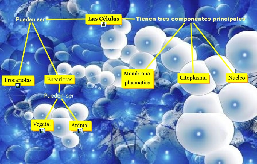 Este Cmap, tiene información relacionada con: Células, Eucariotas Pueden ser Vegetal, Las Células Tienen tres componentes principales Membrana plasmática, Las Células Pueden ser Eucariotas, Las Células Pueden ser Procariotas, Eucariotas Pueden ser Animal, Las Células Tienen tres componentes principales Nucleo, Las Células Tienen tres componentes principales Citoplasma