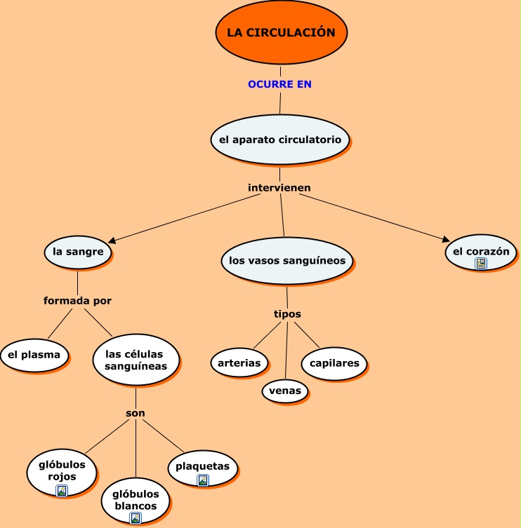 Este Cmap, tiene información relacionada con: EL APARATO CIRCULATORIO, LA CIRCULACIÓN OCURRE EN el aparato circulatorio, los vasos sanguíneos tipos arterias, los vasos sanguíneos tipos venas, el aparato circulatorio intervienen los vasos sanguíneos, la sangre formada por las células sanguíneas, las células sanguíneas son glóbulos rojos, la sangre formada por el plasma, el aparato circulatorio intervienen la sangre, las células sanguíneas son plaquetas, el aparato circulatorio intervienen el corazón, las células sanguíneas son glóbulos blancos, los vasos sanguíneos tipos capilares