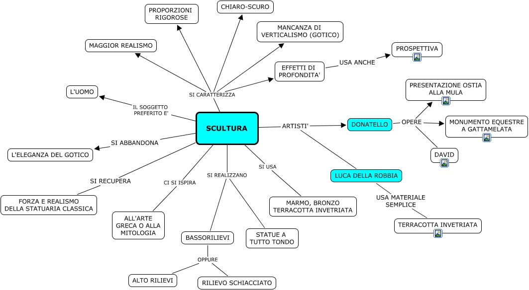 Questa Cmap, creata con IHMC CmapTools, contiene informazioni relative a: SCULTURA 400, SCULTURA SI RECUPERA FORZA E REALISMO DELLA STATUARIA CLASSICA, SCULTURA SI CARATTERIZZA MANCANZA DI VERTICALISMO (GOTICO), SCULTURA SI CARATTERIZZA PROPORZIONI RIGOROSE, SCULTURA SI REALIZZANO BASSORILIEVI, DONATELLO OPERE PRESENTAZIONE OSTIA ALLA MULA, BASSORILIEVI OPPURE RILIEVO SCHIACCIATO, SCULTURA SI CARATTERIZZA CHIARO-SCURO, BASSORILIEVI OPPURE ALTO RILIEVI, SCULTURA SI CARATTERIZZA EFFETTI DI PROFONDITA', DONATELLO OPERE DAVID, DONATELLO OPERE MONUMENTO EQUESTRE A GATTAMELATA, EFFETTI DI PROFONDITA' USA ANCHE PROSPETTIVA, SCULTURA SI REALIZZANO STATUE A TUTTO TONDO, LUCA DELLA ROBBIA USA MATERIALE SEMPLICE TERRACOTTA INVETRIATA, SCULTURA IL SOGGETTO PREFERITO E' L'UOMO, SCULTURA CI SI ISPIRA ALL'ARTE GRECA O ALLA MITOLOGIA, SCULTURA SI CARATTERIZZA MAGGIOR REALISMO, SCULTURA SI ABBANDONA L'ELEGANZA DEL GOTICO, SCULTURA ARTISTI' LUCA DELLA ROBBIA, SCULTURA ARTISTI' DONATELLO