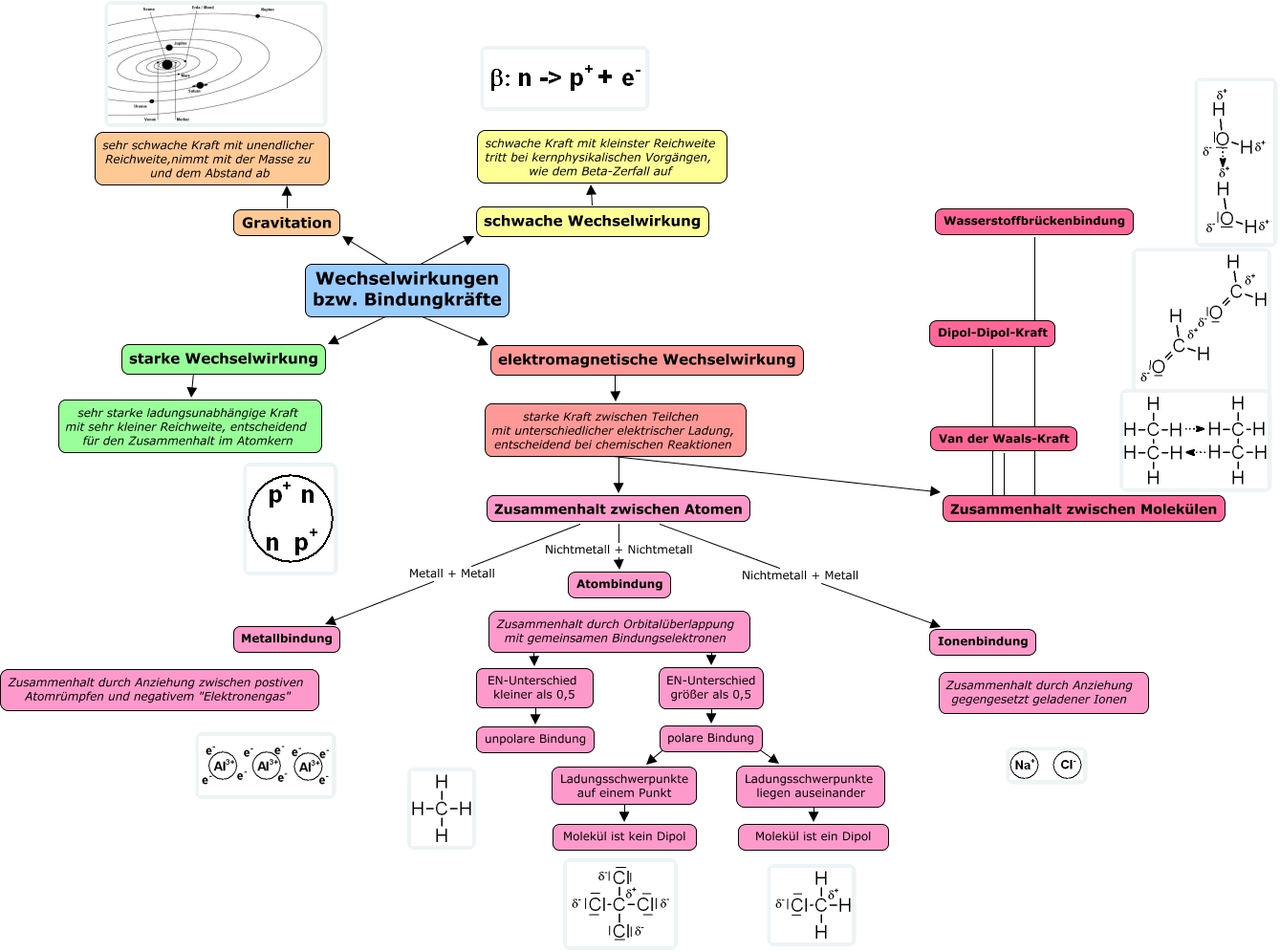Dieses mit IHMC CmapTools erstellte CMap hat Informationen bezüglich: cmapWechselwirkungtest, Zusammenhalt zwischen Molekülen ???? Wasserstoffbrückenbindung, starke Wechselwirkung ???? sehr starke ladungsunabhängige Kraft mit sehr kleiner Reichweite, entscheidend für den Zusammenhalt im Atomkern, Zusammenhalt durch Orbitalüberlappung mit gemeinsamen Bindungselektronen ???? EN-Unterschied größer als 0,5, Wechselwirkungen bzw. Bindungkräfte ???? starke Wechselwirkung, polare Bindung ???? Ladungsschwerpunkte auf einem Punkt, EN-Unterschied kleiner als 0,5 ???? unpolare Bindung, Ladungsschwerpunkte auf einem Punkt ???? Molekül ist kein Dipol, EN-Unterschied größer als 0,5 ???? polare Bindung, Ladungsschwerpunkte liegen auseinander ???? Molekül ist ein Dipol, starke Kraft zwischen Teilchen mit unterschiedlicher elektrischer Ladung, entscheidend bei chemischen Reaktionen ???? Zusammenhalt zwischen Molekülen, Zusammenhalt zwischen Atomen Nichtmetall + Nichtmetall Atombindung, Wechselwirkungen bzw. Bindungkräfte ???? elektromagnetische Wechselwirkung, starke Kraft zwischen Teilchen mit unterschiedlicher elektrischer Ladung, entscheidend bei chemischen Reaktionen ???? Zusammenhalt zwischen Atomen, Zusammenhalt zwischen Atomen Metall + Metall Metallbindung, Wechselwirkungen bzw. Bindungkräfte ???? Gravitation, Gravitation ???? sehr schwache Kraft mit unendlicher Reichweite,nimmt mit der Masse zu und dem Abstand ab, Zusammenhalt durch Orbitalüberlappung mit gemeinsamen Bindungselektronen ???? EN-Unterschied kleiner als 0,5, polare Bindung ???? Ladungsschwerpunkte liegen auseinander, elektromagnetische Wechselwirkung ???? starke Kraft zwischen Teilchen mit unterschiedlicher elektrischer Ladung, entscheidend bei chemischen Reaktionen, Zusammenhalt zwischen Molekülen ???? Dipol-Dipol-Kraft