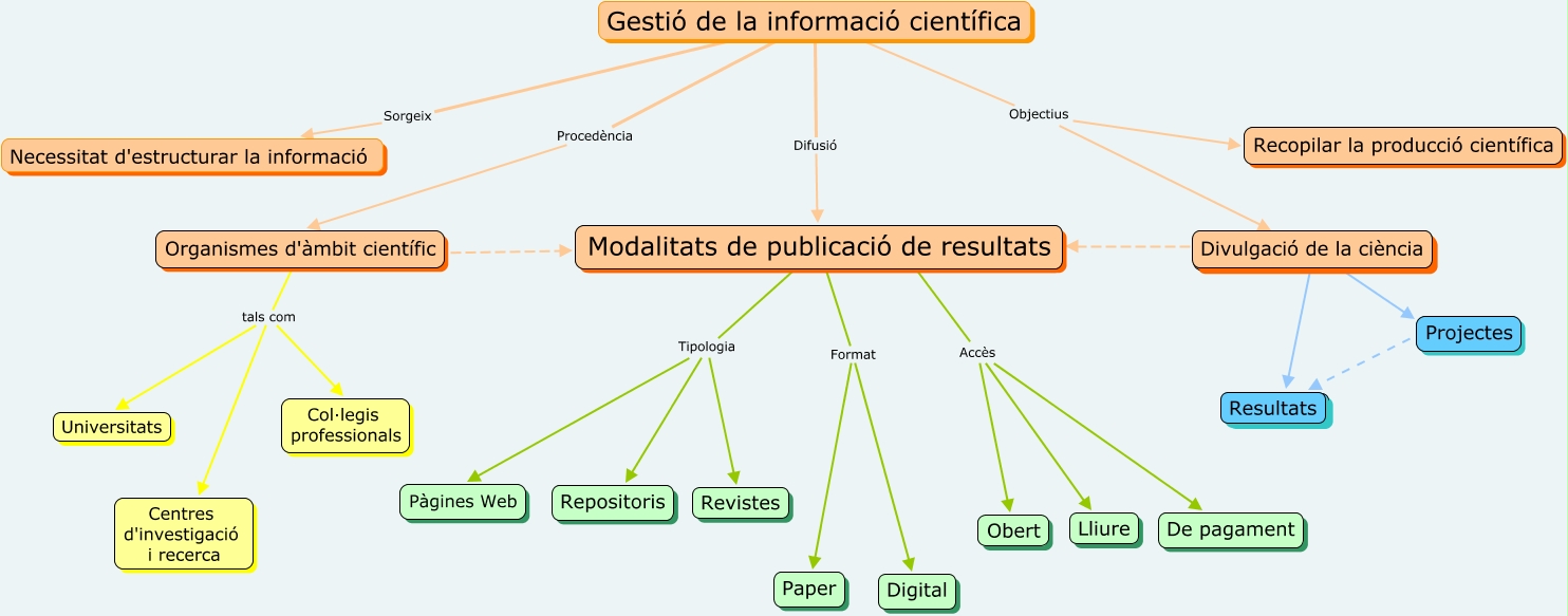 Aquest mapa conceptual conté informació relacionada amb: Mapa conceptual_v7_Mar, Gestió de la informació científica Objectius Recopilar la producció científica, Modalitats de publicació de resultats Format Paper, Organismes d'àmbit científic tals com Universitats, Gestió de la informació científica Procedència Organismes d'àmbit científic, Modalitats de publicació de resultats Format Digital, Organismes d'àmbit científic tals com Centres d'investigació i recerca, ???? Accès Obert, Resultats ???? Resultats, Organismes d'àmbit científic ???? Modalitats de publicació de resultats, Modalitats de publicació de resultats Tipologia Pàgines Web, ???? Accès De pagament, Divulgació de la ciència ???? Modalitats de publicació de resultats, ???? Accès Lliure, ???? ???? Modalitats de publicació de resultats, Divulgació de la ciència ???? Resultats, Organismes d'àmbit científic tals com Col·legis professionals, Gestió de la informació científica Difusió Modalitats de publicació de resultats, Gestió de la informació científica Objectius Divulgació de la ciència, Modalitats de publicació de resultats Tipologia Revistes, Modalitats de publicació de resultats Tipologia Repositoris