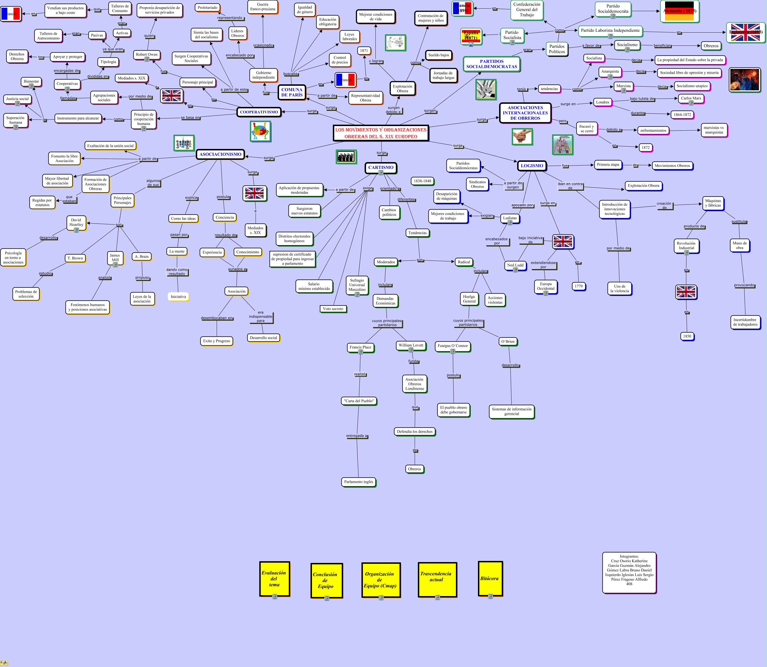 Este Cmap, tiene información relacionada con: Mapa Conceptual de Historia Tarea 3, Agrupaciones sociales llamadas Cooperativas, Demandas Económicas cuyos principales partidarios Francis Place, CARTISMO a partir de Aplicación de propuestas moderadas, Huelga General cuyos principales partidarios Feargus O´Connor, William Lovett funda Asociación Obreros Londinense, Inglaterra en 1850, Partido Socialdemocráta ???? Alemania ( 1875), LOGISMO a partir de surgen Sindicatos Obreros, Máquinas y fábricas sustituía Mano de obra, COMUNA DE PARÍS en Francia, Explotación Obrera y lograr Mejorar condiciones de vida, Instrumento para alcanzar la Bienestar, Conciencia resultado de Conocimiento, Partidos Políticos como Partido Socialista, Francis Place realizó "Carta del Pueblo", Inglaterra a Mediados s. XIX, Explotación Obrera como Sueldo bajos, CARTISMO a partir de Surgieron nuevos estatutos, LOGISMO a partir de surgen Partidos Socialdemócratas, CARTISMO exige Voto secreto