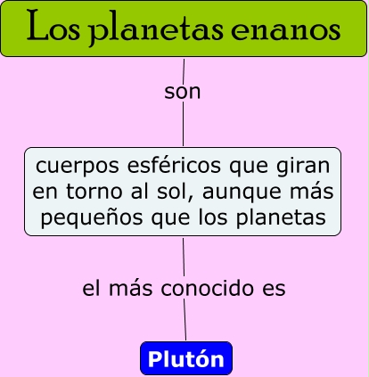 Este Cmap, tiene información relacionada con: Los planetas enanos, Los planetas enanos son cuerpos esféricos que giran en torno al sol, aunque más pequeños que los planetas, cuerpos esféricos que giran en torno al sol, aunque más pequeños que los planetas el más conocido es Plutón