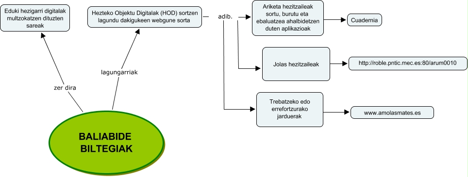 Este Cmap, tiene información relacionada con: baliabide_biltegiak, BALIABIDE BILTEGIAK lagungarriak Hezteko Objektu Digitalak (HOD) sortzen lagundu dakigukeen webgune sorta, Jolas hezitzaileak ???? http://roble.pntic.mec.es:80/arum0010, Hezteko Objektu Digitalak (HOD) sortzen lagundu dakigukeen webgune sorta adib., Hezteko Objektu Digitalak (HOD) sortzen lagundu dakigukeen webgune sorta adib. Ariketa hezitzaileak sortu, burutu eta ebaluatzea ahalbidetzen duten aplikazioak, BALIABIDE BILTEGIAK zer dira Eduki hezigarri digitalak multzokatzen dituzten sareak, Hezteko Objektu Digitalak (HOD) sortzen lagundu dakigukeen webgune sorta adib. Trebatzeko edo errefortzurako jarduerak, Ariketa hezitzaileak sortu, burutu eta ebaluatzea ahalbidetzen duten aplikazioak ???? Cuadernia, Trebatzeko edo errefortzurako jarduerak ???? www.amolasmates.es