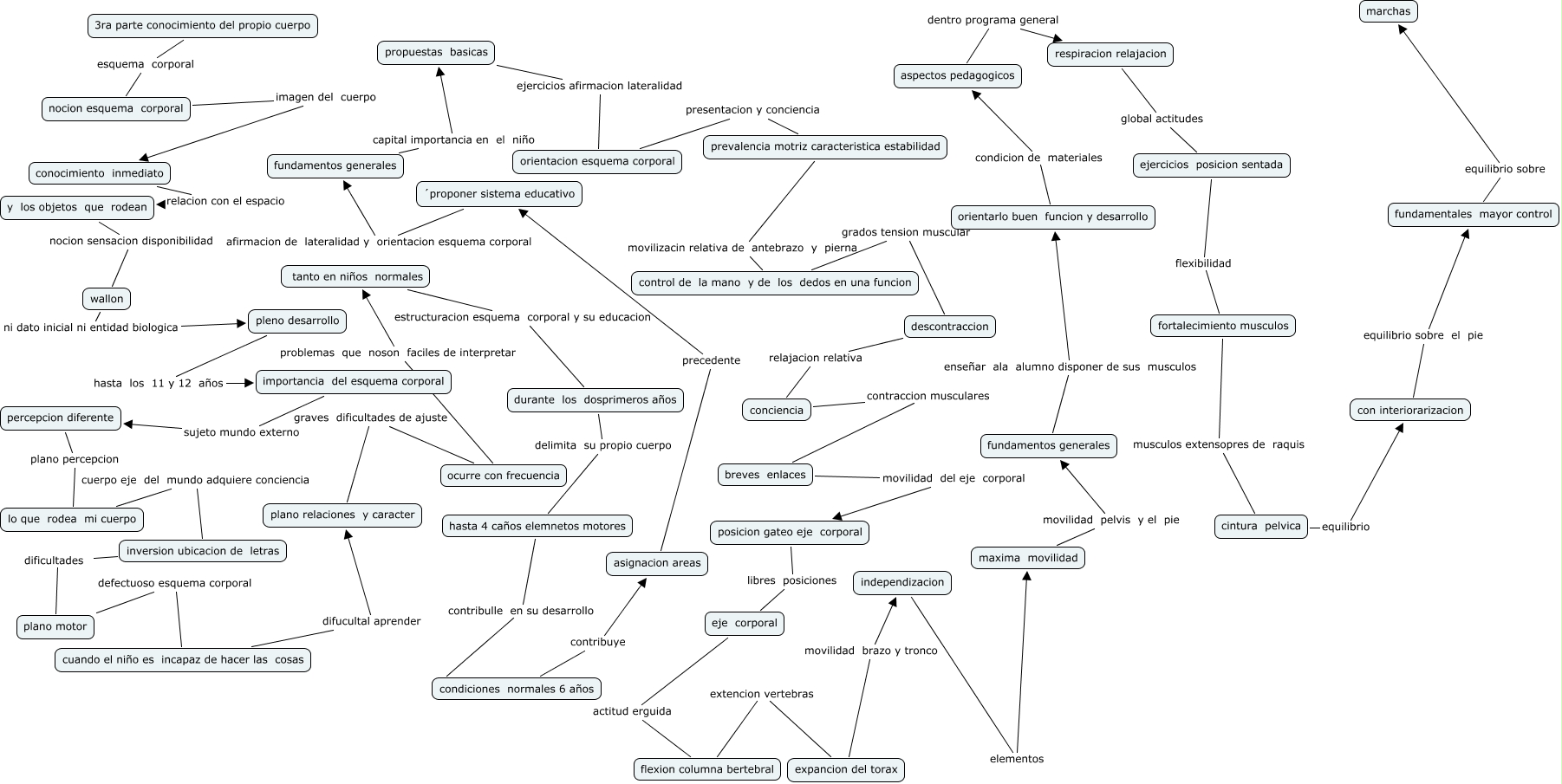 Este Cmap, tiene información relacionada con: 3ra parte importante, 3ra parte conocimiento del propio cuerpo esquema corporal nocion esquema corporal, durante los dosprimeros años delimita su propio cuerpo hasta 4 caños elemnetos motores, plano motor defectuoso esquema corporal cuando el niño es incapaz de hacer las cosas, pleno desarrollo hasta los 11 y 12 años importancia del esquema corporal, lo que rodea mi cuerpo cuerpo eje del mundo adquiere conciencia inversion ubicacion de letras, flexion columna bertebral extencion vertebras expancion del torax, ejercicios posicion sentada flexibilidad fortalecimiento musculos, ocurre con frecuencia problemas que noson faciles de interpretar tanto en niños normales, cintura pelvica equilibrio con interiorarizacion, conciencia contraccion musculares breves enlaces, fortalecimiento musculos musculos extensopres de raquis cintura pelvica, ´proponer sistema educativo afirmacion de lateralidad y orientacion esquema corporal fundamentos generales, conocimiento inmediato relacion con el espacio y los objetos que rodean, fundamentos generales capital importancia en el niño propuestas basicas, prevalencia motriz caracteristica estabilidad movilizacin relativa de antebrazo y pierna control de la mano y de los dedos en una funcion, importancia del esquema corporal sujeto mundo externo percepcion diferente, expancion del torax movilidad brazo y tronco independizacion, orientarlo buen funcion y desarrollo condicion de materiales aspectos pedagogicos, respiracion relajacion global actitudes ejercicios posicion sentada, fundamentales mayor control equilibrio sobre marchas