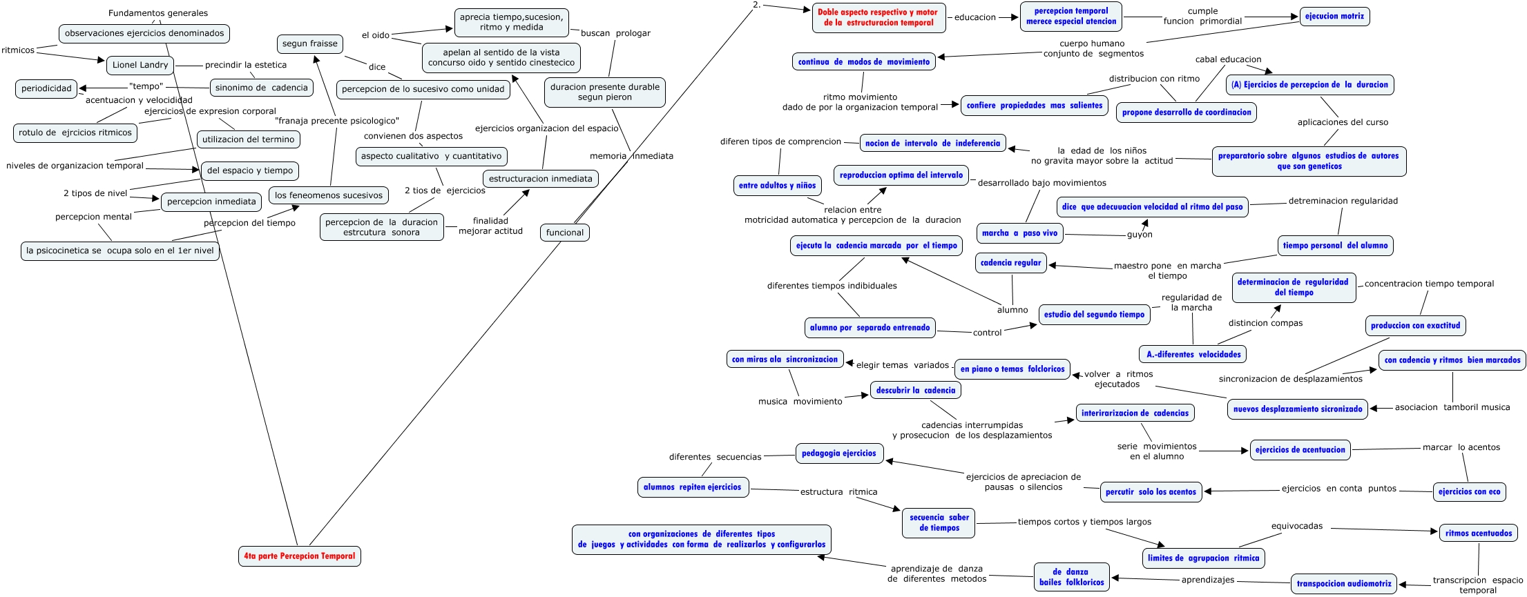Este Cmap, tiene información relacionada con: cuarta parte, produccion con exactitud sincronizacion de desplazamientos con cadencia y ritmos bien marcados, transpocicion audiomotriz aprendizajes de danza bailes folkloricos, sinonimo de cadencia "tempo" periodicidad, (A) Ejercicios de percepcion de la duracion aplicaciones del curso preparatorio sobre algunos estudios de autores que son geneticos, confiere propiedades mas salientes distribucion con ritmo propone desarrollo de coordinacion, cadencia regular alumno ejecuta la cadencia marcada por el tiempo, con cadencia y ritmos bien marcados asociacion tamboril musica nuevos desplazamiento sicronizado, tiempo personal del alumno maestro pone en marcha el tiempo cadencia regular, limites de agrupacion ritmica equivocadas ritmos acentuados, rotulo de ejrcicios ritmicos ejercicios de expresion corporal utilizacion del termino, alumnos repiten ejercicios estructura ritmica secuencia saber de tiempos, determinacion de regularidad del tiempo concentracion tiempo temporal produccion con exactitud, de danza bailes folkloricos aprendizaje de danza de diferentes metodos con organizaciones de diferentes tipos de juegos y actividades con forma de realizarlos y configurarlos, aspecto cualitativo y cuantitativo 2 tios de ejercicios percepcion de la duracion estrcutura sonora, del espacio y tiempo 2 tipos de nivel percepcion inmediata, ejercicios con eco ejercicios en conta puntos percutir solo los acentos, continua de modos de movimiento ritmo movimiento dado de por la organizacion temporal confiere propiedades mas salientes, entre adultos y niños relacion entre motricidad automatica y percepcion de la duracion reproduccion optima del intervalo, percepcion de la duracion estrcutura sonora finalidad mejorar actitud estructuracion inmediata, pedagogia ejercicios diferentes secuencias alumnos repiten ejercicios