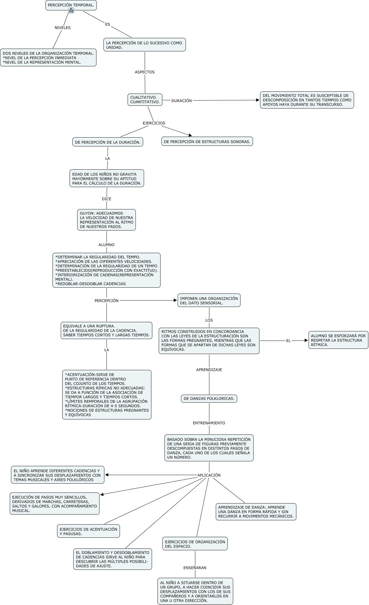 Este Cmap, tiene información relacionada con: CUARTA PARTE, IMPONEN UNA ORGANIZACIÓN DEL DATO SENSORIAL. LOS RITMOS CONSTRUIDOS EN CONCORDANCIA CON LAS LEYES DE LA ESTRUCTURACIÓN SON LAS FORMAS PREGNANTES, MIENTRAS QUE LAS FORMAS QUE SE APARTAN DE DICHAS LEYES SON EQUÍVOCAS., EQUIVALE A UNA RUPTURA. DE LA REGULARIDAD DE LA CADENCIA. SABER TIEMPOS CORTOS Y LARGAS TIEMPOS. LA *ACENTUACIÓN:SIRVE DE PUNTO DE REFERENCIA DENTRO DEL COJUNTO DE LOS TIEMPOS. *ESTRUCTURAS RÍMICAS NO ADECUADAS: SE DA A FUNCIÓN DE LA ASOCIACIÓN DE TIEMPOR LARGOS Y TIEMPOS CORTOS. *LÍMITES REMPORALES DE LA AGRUPACIÓN RÍTMICA:DURACIÓN DE 4-5 SEGUNDOS. *NOCIONES DE ESTRUCTURAS PREGNANTES Y EQUÍVOCAS, BASADO SOBRA LA MINUCIOSA REPETICIÓN DE UNA SERIA DE FIGURAS PREVIAMENTE DESCOMPUESTAS EN DISTINTOS PASOS DE DANZA, CADA UNO DE LOS CUALES SEÑALA UN NÚMERO. APLICACIÓN EJECUCIÓN DE PASOS MUY SENCILLOS, DERIVADOS DE MARCHAS, CARRETERAS, SALTOS Y GALOPES, CON ACOMPAÑAMIENTO MUSICAL., PERCEPCIÓN TEMPORAL. NIVELES DOS NIVELES DE LA ORGANIZACIÓN TEMPORAL. *NIVEL DE LA PERCEPCIÓN INMEDIATA *NIVEL DE LA REPRESENTACIÓN MENTAL., BASADO SOBRA LA MINUCIOSA REPETICIÓN DE UNA SERIA DE FIGURAS PREVIAMENTE DESCOMPUESTAS EN DISTINTOS PASOS DE DANZA, CADA UNO DE LOS CUALES SEÑALA UN NÚMERO. APLICACIÓN EL NIÑO APRENDE DIFERENTES CADENCIAS Y A SINCRONIZAR SUS DESPLAZAMIENTOS CON TEMAS MUSICALES Y AIRES FOLKLÓRICOS, RITMOS CONSTRUIDOS EN CONCORDANCIA CON LAS LEYES DE LA ESTRUCTURACIÓN SON LAS FORMAS PREGNANTES, MIENTRAS QUE LAS FORMAS QUE SE APARTAN DE DICHAS LEYES SON EQUÍVOCAS. APRENDIZAJE DE DANZAS FOLKLORICAS., *DETERMINAR LA REGULARIDAD DEL TEMPO. *APRECIACIÓN DE LAS DIFERENTES VELOCIDADES. *DETERMINACIÓN DE LA REGULARIDAD DE UN TEMPO *PREESTABLECIDO(REPRODUCCIÓN CON EXACTITUD). *INTERIORIZACIÓN DE CADENAS(REPRESENTACIÓN MENTAL). *REDOBLAR-DESDOBLAR CADENCIAS PERCEPCIÓN IMPONEN UNA ORGANIZACIÓN DEL DATO SENSORIAL., BASADO SOBRA LA MINUCIOSA REPETICIÓN DE UNA SERIA DE FIGURAS PREVIAMENTE DESCOMPUESTAS EN DISTINTOS PASOS DE DANZA, CADA UNO DE LOS CUALES SEÑALA UN NÚMERO. APLICACIÓN EJERCICIOS DE ACENTUACIÓN Y PASUSAS., CUALITATIVO. CUANTITATIVO. DURACIÓN DEL MOVIMIENTO TOTAL ES SUSCEPTIBLE DE DESCOMPOSICIÓN EN TANTOS TIEMPOS COMO APOYOS HAYA DURANTE SU TRANSCURSO., PERCEPCIÓN TEMPORAL. ES LA PERCEPCIÓN DE LO SUCESIVO COMO UNIDAD., DE DANZAS FOLKLORICAS. ENTRENAMIENTO BASADO SOBRA LA MINUCIOSA REPETICIÓN DE UNA SERIA DE FIGURAS PREVIAMENTE DESCOMPUESTAS EN DISTINTOS PASOS DE DANZA, CADA UNO DE LOS CUALES SEÑALA UN NÚMERO., EJERCICIOS DE ORGANIZACIÓN DEL ESPACIO. ENSEÑARAN AL NIÑO A SITUARSE DENTRO DE UN GRUPO, A HACER COINCIDIR SUS DESPLAZAMIENTOS CON LOS DE SUS COMPAÑEROS Y A ORIENTARLOS EN UNA U OTRA DIRECCIÓN., CUALITATIVO. CUANTITATIVO. EJERCICIOS DE PERCEPCIÓN DE ESTRUCTURAS SONORAS., BASADO SOBRA LA MINUCIOSA REPETICIÓN DE UNA SERIA DE FIGURAS PREVIAMENTE DESCOMPUESTAS EN DISTINTOS PASOS DE DANZA, CADA UNO DE LOS CUALES SEÑALA UN NÚMERO. APLICACIÓN EL DOBLAMIENTO Y DESDOBLAMIENTO DE CADENCIAS SIRVE AL NIÑO PARA DESCUBRIR LAS MÚLTIPLES POSIBILI- DADES DE AJUSTE., BASADO SOBRA LA MINUCIOSA REPETICIÓN DE UNA SERIA DE FIGURAS PREVIAMENTE DESCOMPUESTAS EN DISTINTOS PASOS DE DANZA, CADA UNO DE LOS CUALES SEÑALA UN NÚMERO. APLICACIÓN APRENDIZAJE DE DANZA: APRENDE UNA DANZA EN FORMA RÁPIDA Y SIN RECURRIR A MOVIMENTOS MECÁNICOS., LA PERCEPCIÓN DE LO SUCESIVO COMO UNIDAD. ASPECTOS CUALITATIVO. CUANTITATIVO., DE PERCEPCIÓN DE LA DURACIÓN. LA EDAD DE LOS NIÑOS NO GRAVITA MAYORMENTE SOBRE SU APTITUD PARA EL CÁLCULO DE LA DURACIÓN., BASADO SOBRA LA MINUCIOSA REPETICIÓN DE UNA SERIA DE FIGURAS PREVIAMENTE DESCOMPUESTAS EN DISTINTOS PASOS DE DANZA, CADA UNO DE LOS CUALES SEÑALA UN NÚMERO. APLICACIÓN EJERCICIOS DE ORGANIZACIÓN DEL ESPACIO., EDAD DE LOS NIÑOS NO GRAVITA MAYORMENTE SOBRE SU APTITUD PARA EL CÁLCULO DE LA DURACIÓN. DICE GUYON: ADECUADMOS LA VELOCIDAD DE NUESTRA REPRESENTACIÓN AL RITMO DE NUESTROS PASOS., GUYON: ADECUADMOS LA VELOCIDAD DE NUESTRA REPRESENTACIÓN AL RITMO DE NUESTROS PASOS. ALUMNO *DETERMINAR LA REGULARIDAD DEL TEMPO. *APRECIACIÓN DE LAS DIFERENTES VELOCIDADES. *DETERMINACIÓN DE LA REGULARIDAD DE UN TEMPO *PREESTABLECIDO(REPRODUCCIÓN CON EXACTITUD). *INTERIORIZACIÓN DE CADENAS(REPRESENTACIÓN MENTAL). *REDOBLAR-DESDOBLAR CADENCIAS