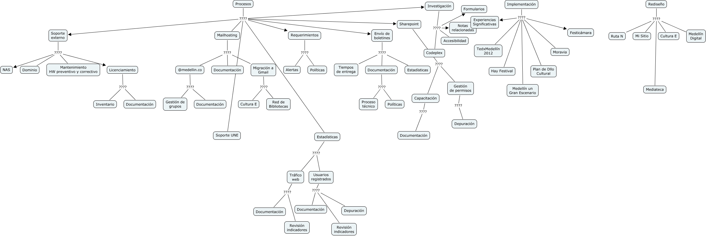 Este Cmap, tiene información relacionada con: Procesos Soporte, Migración a Gmail ???? Cultura E, Requerimientos ???? Políticas, Rediseño ???? Mi Sitio, Rediseño ???? Medellín Digital, Usuarios registrados ???? Revisión indicadores, Procesos ???? Sharepoint, Rediseño ???? Mediateca, Documentación ???? Políticas, Procesos ???? Mailhosting, Rediseño ???? Cultura E, Requerimientos ???? Alertas, Licenciamiento ???? Documentación, Soporte externo ???? Licenciamiento, Sharepoint ???? Gestión de permisos, Mailhosting ???? @medellin.co, Implementación ???? TedxMedellín 2012, Usuarios registrados ???? Documentación, Procesos ???? Estadísticas, Procesos ???? Envío de boletines, Procesos ???? Investigación