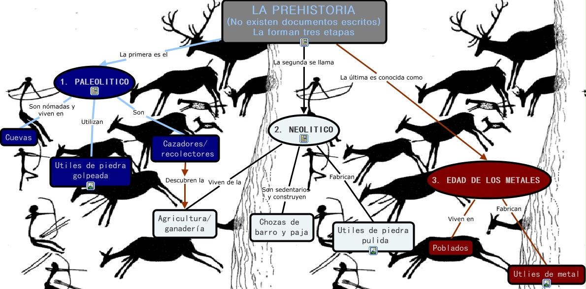 Este Cmap, tiene información relacionada con: Cmap 3, Cazadores/ recolectores Descubren la Agricultura/ ganadería, 3. EDAD DE LOS METALES Viven en Poblados, 2. NEOLITICO Viven de la Agricultura/ ganadería, 1. PALEOLITICO Son Cazadores/ recolectores, 2. NEOLITICO Fabrican Utiles de piedra pulida, 2. NEOLITICO Son sedentarios y construyen Chozas de barro y paja, LA PREHISTORIA (No existen documentos escritos) La forman tres etapas La primera es el 1. PALEOLITICO, 3. EDAD DE LOS METALES Fabrican Utlies de metal, 1. PALEOLITICO Utilizan Utiles de piedra golpeada, 1. PALEOLITICO Son nómadas y viven en Cuevas, LA PREHISTORIA (No existen documentos escritos) La forman tres etapas La última es conocida como 3. EDAD DE LOS METALES, LA PREHISTORIA (No existen documentos escritos) La forman tres etapas La segunda se llama 2. NEOLITICO