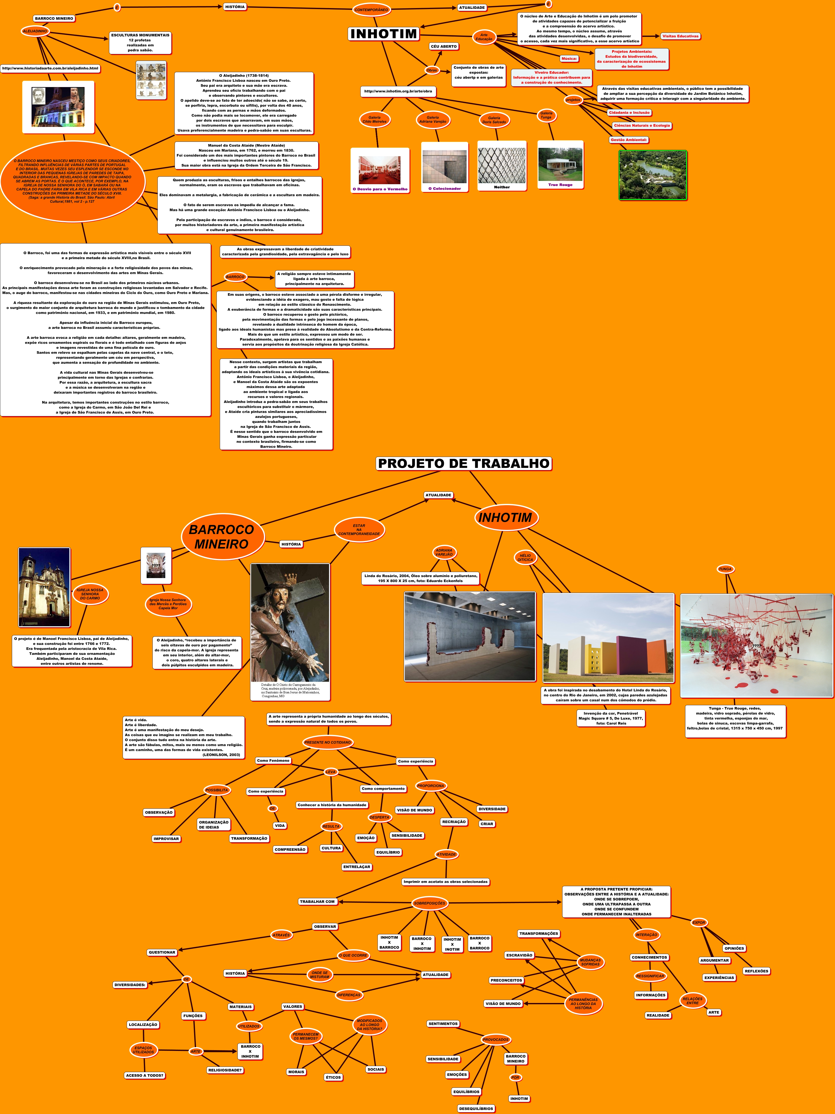 Esse mapa conceitual, produzido no IHMC CmapTools, tem a informação relacionada a: MAPA CONCEITUAL - MINAS EM 15 DE JANEIRO DE 2012, ???? TUNGA Tunga - True Rouge, redes, madeira, vidro soprado, pérolas de vidro, tinta vermelha, esponjas do mar, bolas de sinuca, escovas limpa-garrafa, feltro,bolas de cristal, 1315 x 750 x 450 cm, 1997, INHOTIM Arte Educação Gestão Ambiental:, Museu Aleijadinho O BARROCO MINEIRO NASCEU MESTIÇO COMO SEUS CRIADORES, FILTRANDO INFLUÊNCIAS DE VÁRIAS PARTES DE PORTUGAL E DO BRASIL. MUITAS VEZES SEU ESPLENDOR SE ESCONDE NO INTERIOR DAS PEQUENAS IGREJAS DE PAREDES DE TAIPA, QUADRADAS E BRANCAS, REVELANDO-SE COM IMPACTO QUANDO SE ABREM AS PORTAS. É O QUE ACONTECE, POR EXEMPLO, NA IGREJA DE NOSSA SENHORA DO Ó, EM SABARÁ OU NA CAPELA DO PADRE FARIA EM VILA RICA E EM VÁRIAS OUTRAS CONSTRUÇÕES DA PRIMEIRA METADE DO SÉCULO XVIII. (Saga: a grande História do Brasil. São Paulo: Abril Cultural,1981, vol 2 - p.127 As obras expressavam a liberdade de criatividade caracterizada pela grandiosidade, pela extravagância e pelo luxo, OBSERVAR O QUE OCORRE ATUALIDADE, HISTÓRIA BARROCO MINEIRO ????, A PROPOSTA PRETENTE PROPICIAR: OBSERVAÇÕES ENTRE A HISTÓRIA E A ATUALIDADE: ONDE SE SOBREPOEM, ONDE UMA ULTRAPASSA A OUTRA ONDE SE CONFUNDEM ONDE PERMANECEM INALTERADAS EXPOR REFLEXÕES, A PROPOSTA PRETENTE PROPICIAR: OBSERVAÇÕES ENTRE A HISTÓRIA E A ATUALIDADE: ONDE SE SOBREPOEM, ONDE UMA ULTRAPASSA A OUTRA ONDE SE CONFUNDEM ONDE PERMANECEM INALTERADAS RELAÇÕES ENTRE REALIDADE, ???? BARROCO MINEIRO ????, SENTIMENTOS PROVOCADOS BARROCO MINEIRO, A arte representa a própria humanidade ao longo dos séculos, sendo a expressão natural de todos os povos. PRESENTE NO COTIDIANO Como comportamento, Como experiência PROPORCIONA RECRIAÇÃO, Como experiência PROPORCIONA DIVERSIDADE, A arte representa a própria humanidade ao longo dos séculos, sendo a expressão natural de todos os povos. PRESENTE NO COTIDIANO Como Fenômeno, HISTÓRIA CONTEMPORÂNEO http://www.inhotim.org.br/arte/obra, Museu Aleijadinho O BARROCO MINEIRO NASCEU MESTIÇO COMO SEUS CRIADORES, FILTRANDO INFLUÊNCIAS DE VÁRIAS PARTES DE PORTUGAL E DO BRASIL. MUITAS VEZES SEU ESPLENDOR SE ESCONDE NO INTERIOR DAS PEQUENAS IGREJAS DE PAREDES DE TAIPA, QUADRADAS E BRANCAS, REVELANDO-SE COM IMPACTO QUANDO SE ABREM AS PORTAS. É O QUE ACONTECE, POR EXEMPLO, NA IGREJA DE NOSSA SENHORA DO Ó, EM SABARÁ OU NA CAPELA DO PADRE FARIA EM VILA RICA E EM VÁRIAS OUTRAS CONSTRUÇÕES DA PRIMEIRA METADE DO SÉCULO XVIII. (Saga: a grande História do Brasil. São Paulo: Abril Cultural,1981, vol 2 - p.127 O Barroco, foi uma das formas de expressão artística mais visíveis entre o século XVII e a primeira metade do século XVIII,no Brasil. O enriquecimento provocado pela mineração e a forte religiosidade dos povos das minas, favoreceram o desenvolvimento das artes em Minas Gerais. O barroco desenvolveu-se no Brasil ao lado dos primeiros núcleos urbanos. As principais manifestações dessa arte foram as construções religiosas levantadas em Salvador e Recife. Mas, o auge do barroco, manifestou-se nas cidades mineiras do Ciclo do Ouro, como Ouro Preto e Mariana. A riqueza resultante da exploração do ouro na região de Minas Gerais estimulou, em Ouro Preto, o surgimento do maior conjunto de arquitetura barroca do mundo e justificou o tombamento da cidade como patrimônio nacional, em 1933, e em patrimônio mundial, em 1980. Apesar da influência inicial do Barroco europeu, a arte barroca no Brasil assumiu características próprias. A arte barroca evoca a religião em cada detalhe: altares, geralmente em madeira, expõe ricos ornamentos espirais ou florais e é todo entalhado com figuras de anjos e imagens revestidas de uma fina película de ouro. Santos em relevo se espalham pelas capelas da nave central, e o teto, representando geralmente um céu em perspectiva, que aumenta a sensação de profundidade no ambiente. A vida cultural nas Minas Gerais desenvolveu-se principalmente em torno das Igrejas e confrarias. Por essa razão, a arquitetura, a escultura sacra e a música se desenvolveram na região e deixaram importantes registros do barroco brasileiro. Na arquitetura, temos importantes construções no estilo barroco, como a Igreja do Carmo, em São João Del Rei e a Igreja de São Francisco de Assis, em Ouro Preto., BARROCO MINEIRO ALEIJADINHO Museu Aleijadinho, LOCALIZAÇÃO ESPAÇOS UTILIZADOS BARROCO X INHOTIM, Como Fenômeno POSSIBILITA OBSERVAÇÃO, VALORES PERMANECEM OS MESMOS? MORAIS, Gestão Ambiental: projetos Cidadania e Inclusão