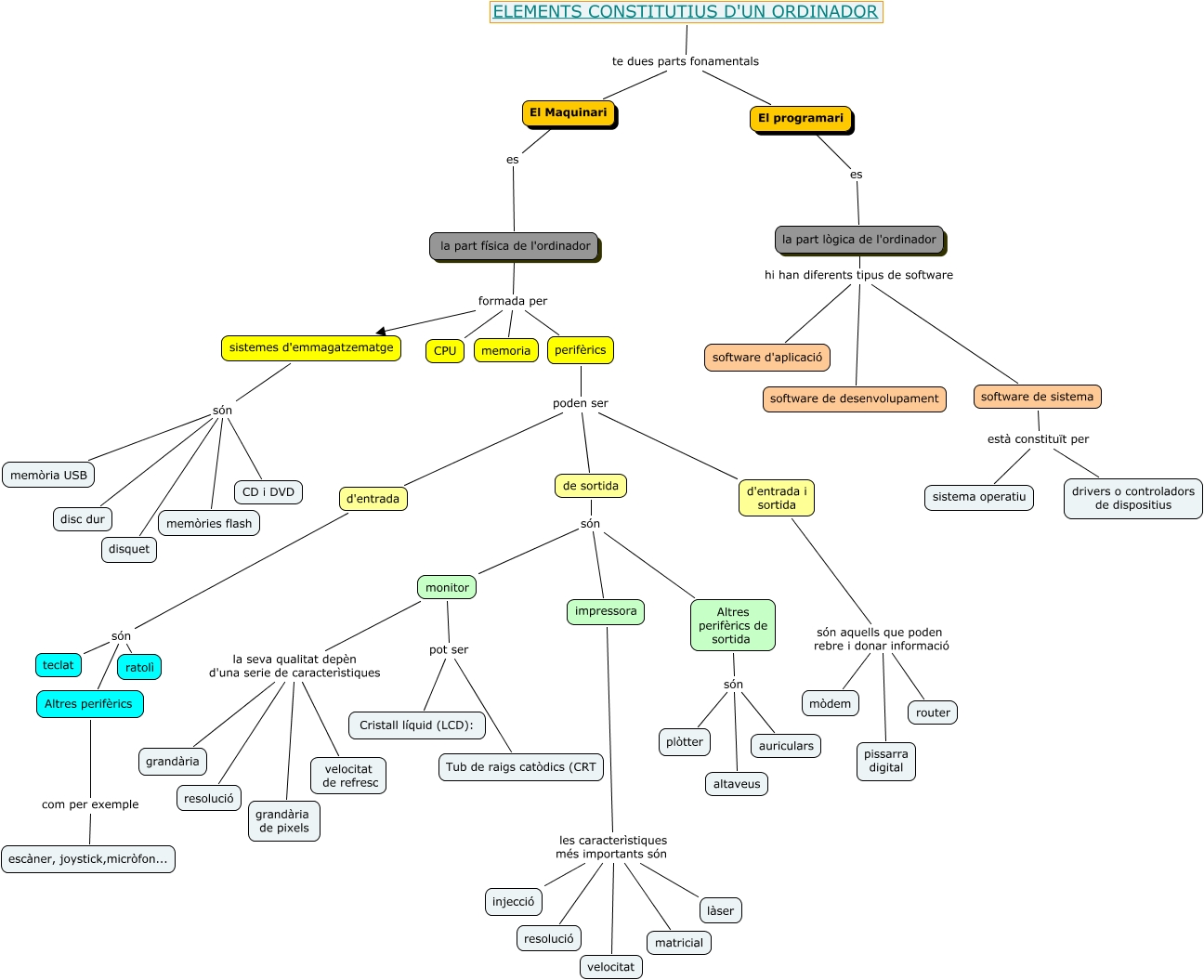 Este Cmap, tiene información relacionada con: components ordinador, monitor pot ser Cristall líquid (LCD):, sistemes d'emmagatzematge són memòries flash, monitor la seva qualitat depèn d'una serie de caracterìstiques grandària de pixels, Altres perifèrics de sortida són altaveus, d'entrada són teclat, ELEMENTS CONSTITUTIUS D'UN ORDINADOR te dues parts fonamentals El programari, sistemes d'emmagatzematge són memòria USB, la part física de l'ordinador formada per perifèrics, d'entrada són Altres perifèrics, d'entrada i sortida són aquells que poden rebre i donar informació mòdem, la part lògica de l'ordinador hi han diferents tipus de software software de sistema, de sortida són impressora, la part física de l'ordinador formada per CPU, la part física de l'ordinador formada per memoria, Altres perifèrics de sortida són plòtter, de sortida són Altres perifèrics de sortida, d'entrada són ratolì, impressora les caracterìstiques més importants són làser, d'entrada i sortida són aquells que poden rebre i donar informació router, ELEMENTS CONSTITUTIUS D'UN ORDINADOR te dues parts fonamentals El Maquinari
